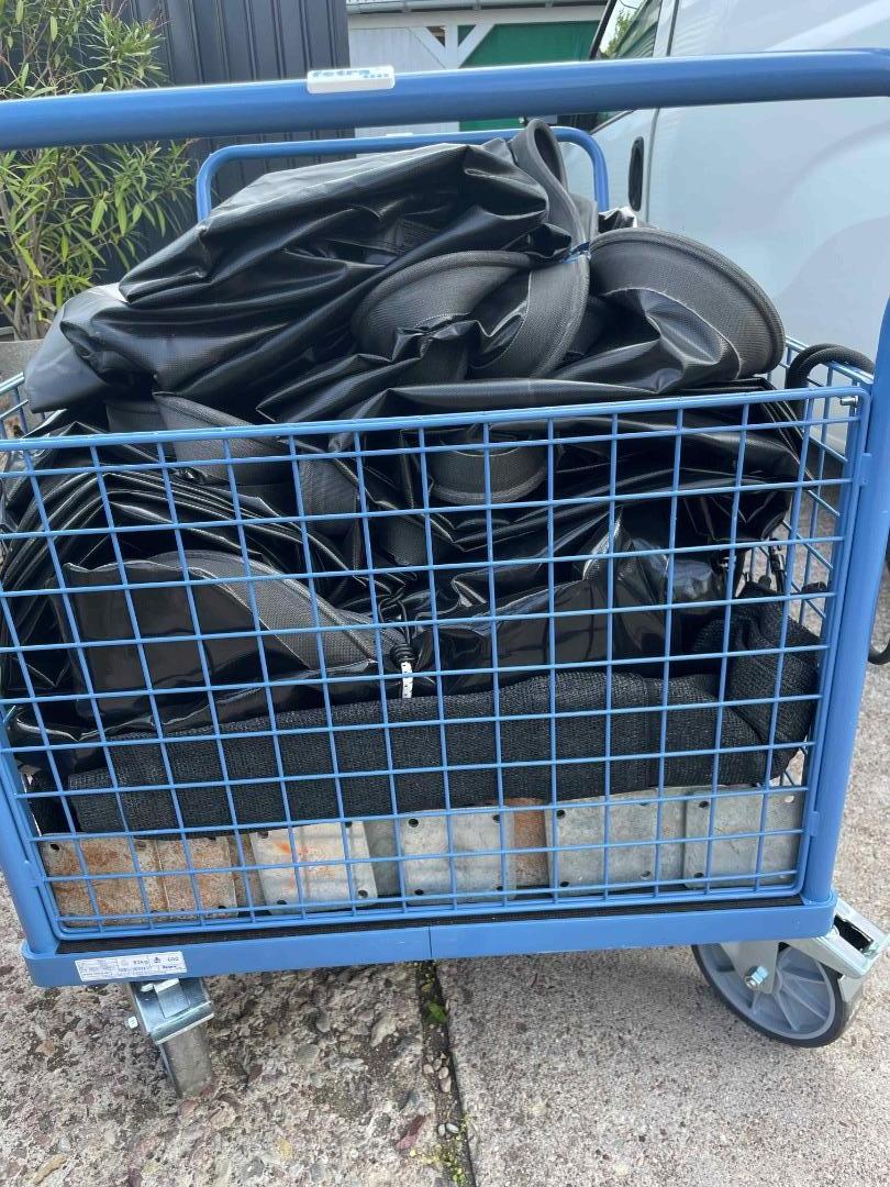 - Planendach schwarz für 6x4 und 8x6m (im stabilen Rollwagen; siehe Bild)