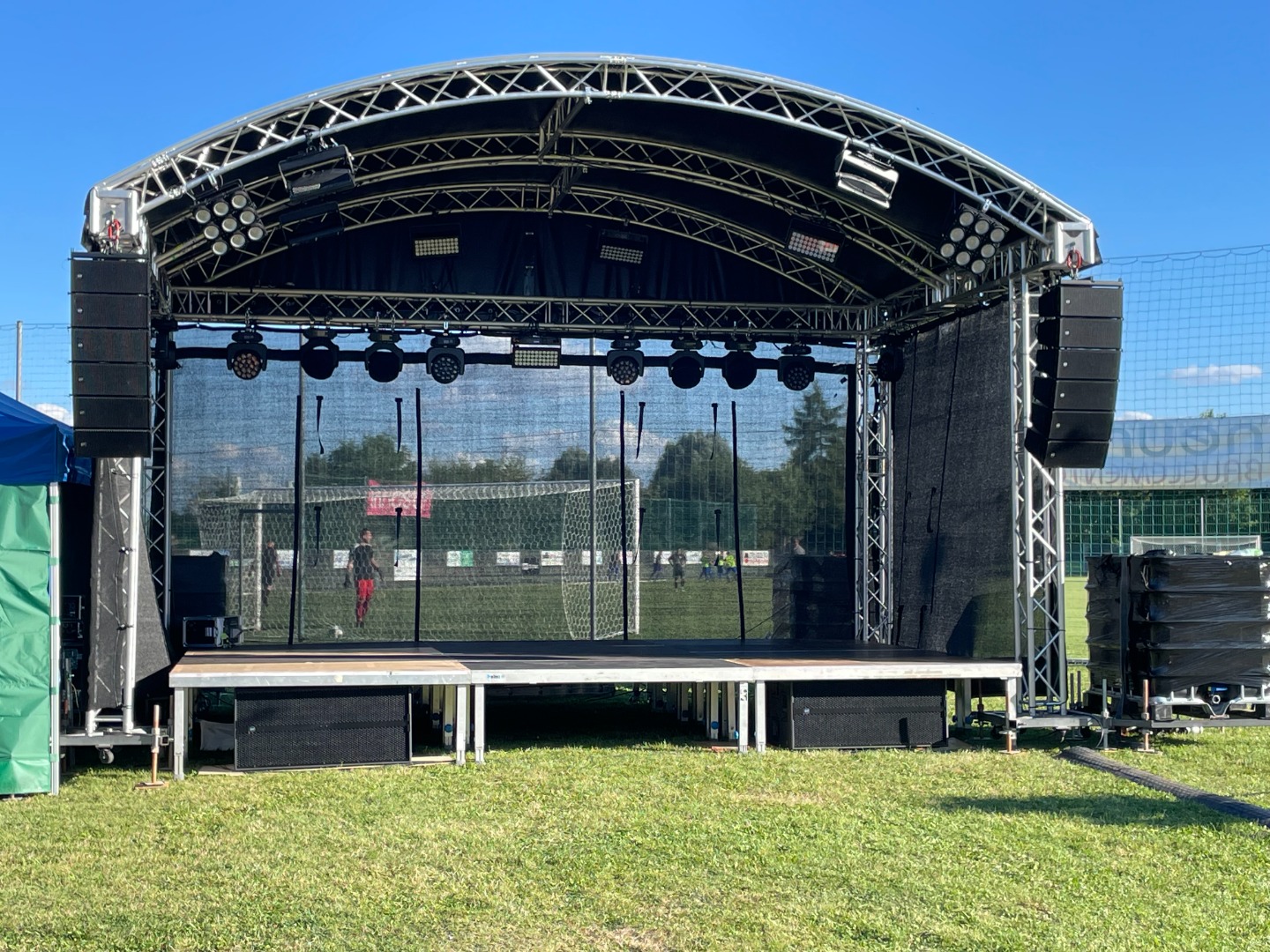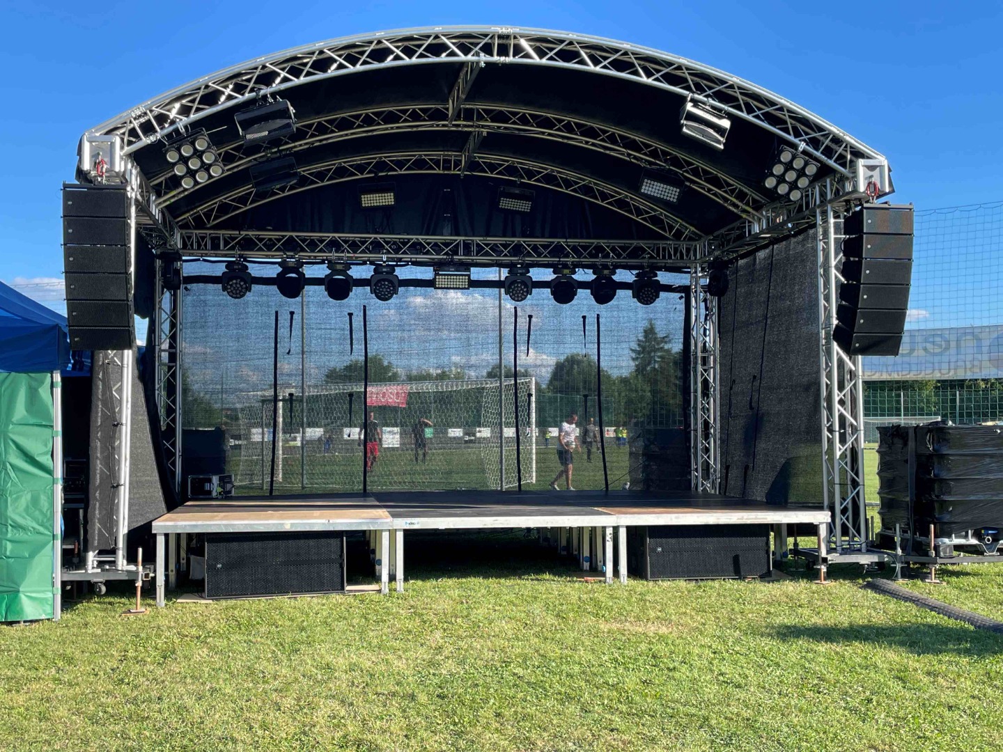 Aufgrund von Platzproplemen bei der Lagerung verkauf ich unsere sehr gut erhaltene und nur 3x aufgebaute Rundbogenbühne (Sonderteile Dachkonstruktion)