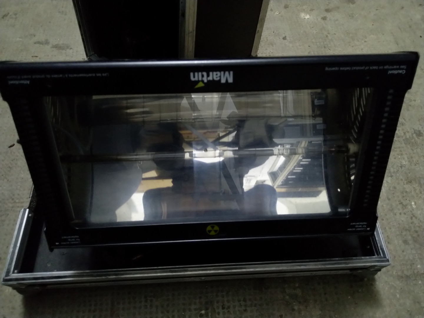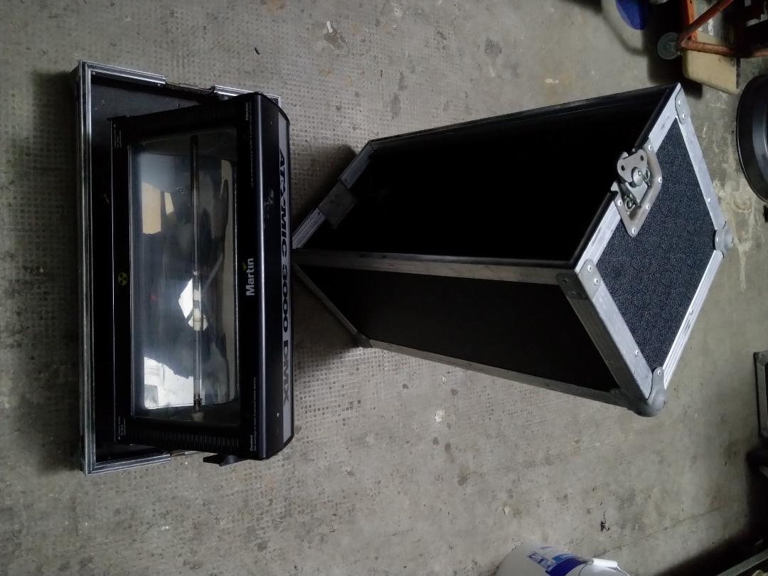Zum Kauf steht ein Case für Martin Atomic 3000 Stroboskope. Das Gerät kann mit dem Bodenteil über Flügelmuttern verschraubt werden und ist so mit Abnehmen der Haube sofort im stehenden Bodenbetrieb nutzbar.