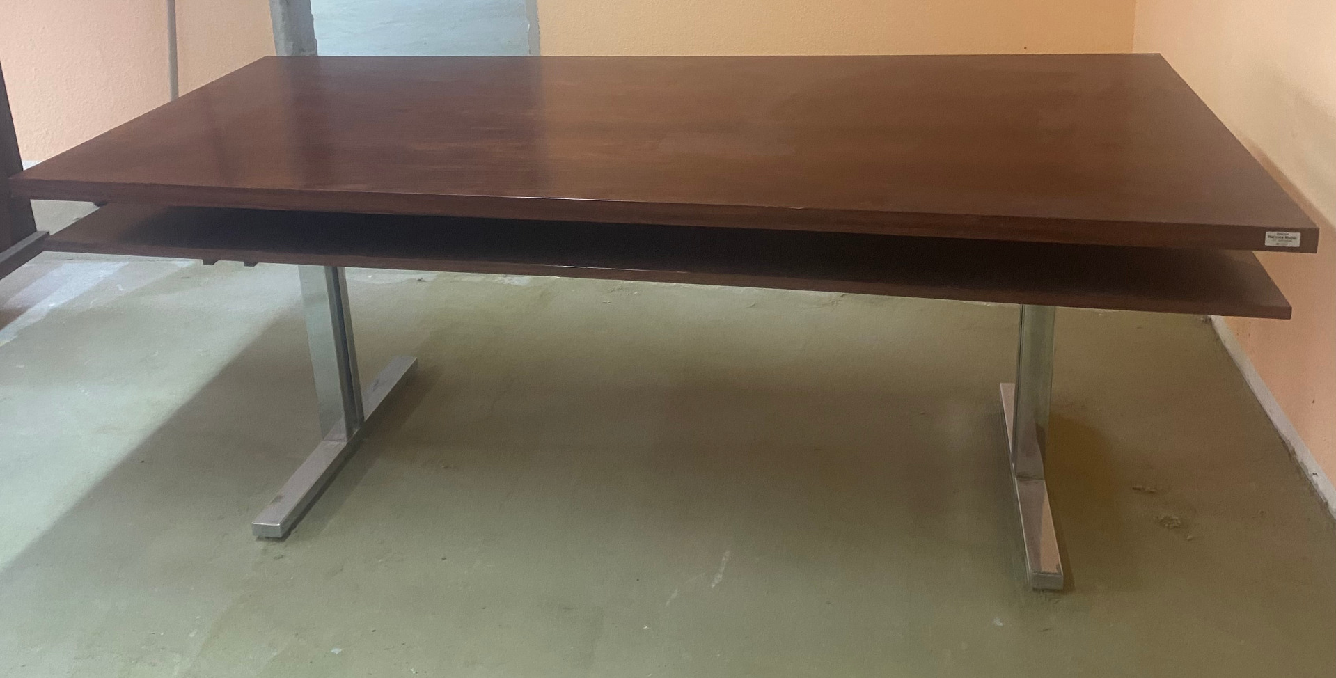 Tischplatte Mahagoni, Füße Chrom,