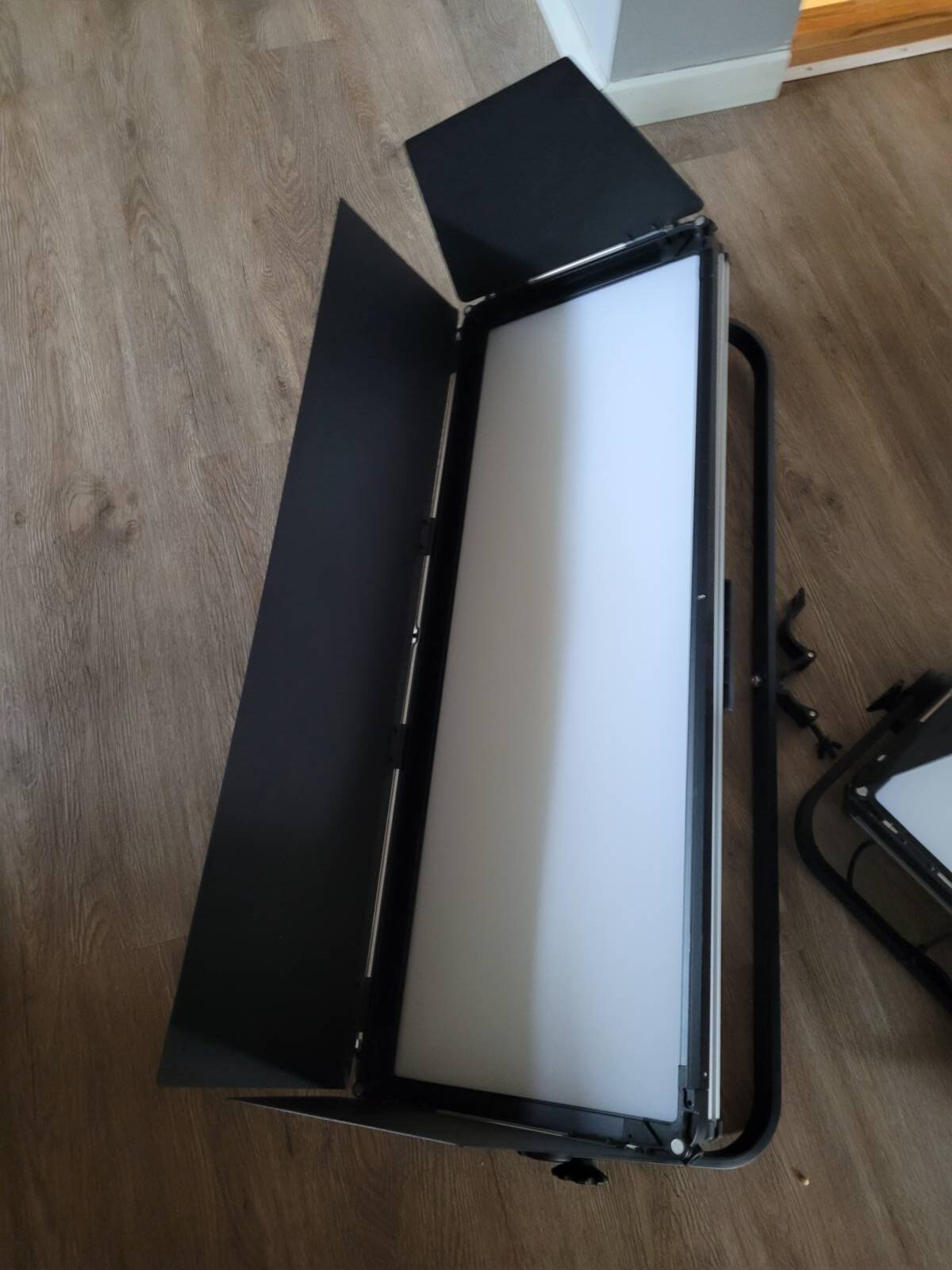 This lighting fixture is fully functional, though it is missing one barn door as shown in the accompanying picture. Otherwise, the unit operates as expected.