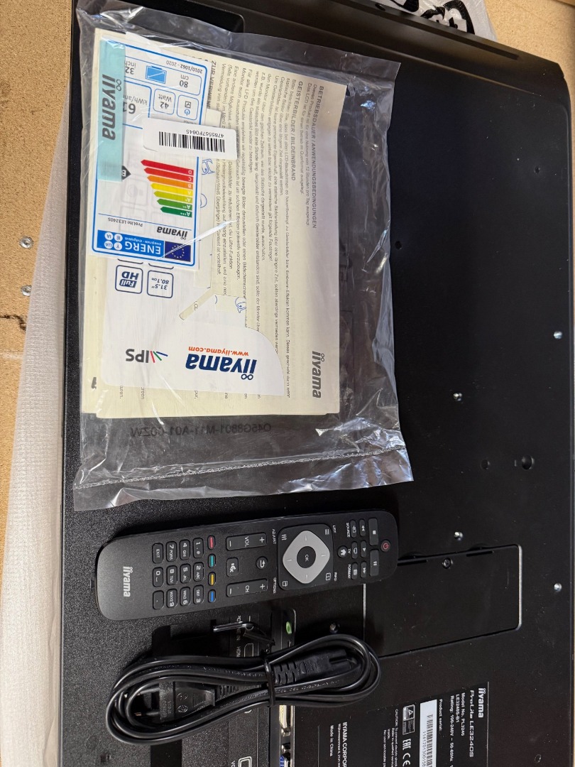 Bedienungsanleitung sowie Fernbedienung und Stromkabel liegen bei.