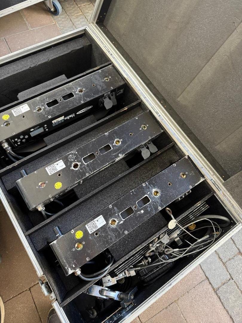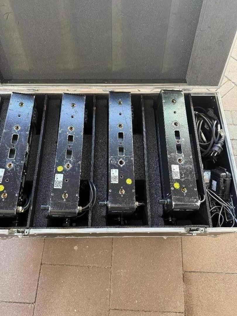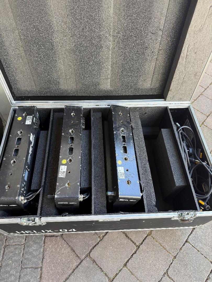Verkaufen 12 Stück Showtec Helix 4000 Q4. Je im Set mit 4 Geräten, Case, Anschlusskabel, Haken, Bodenplatte und Safety.