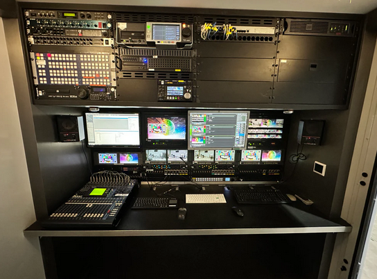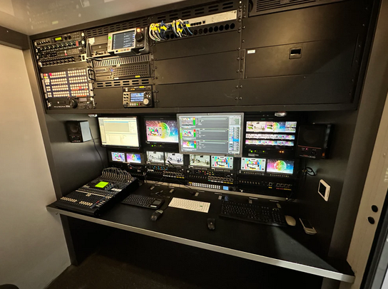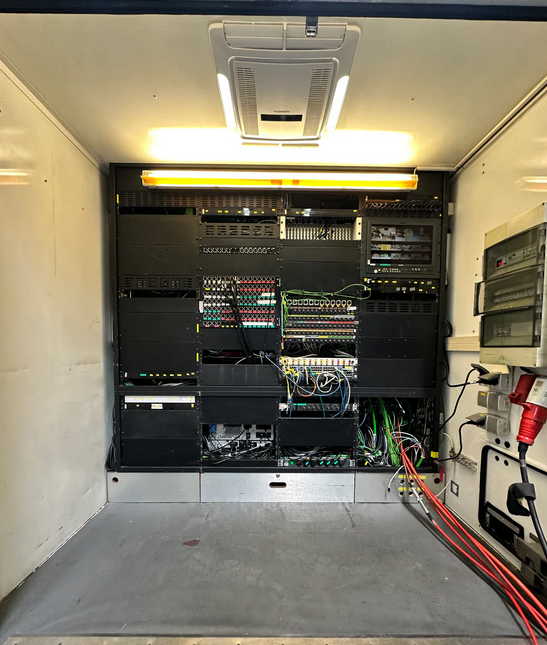 (2x Analog to SDI, 3G quad fibre optic receiver, 2x 3G-HD frame synchroniser, SDi to CVBS converter, 3G Quad fibre Optik transmitter, 2x Downconverter)