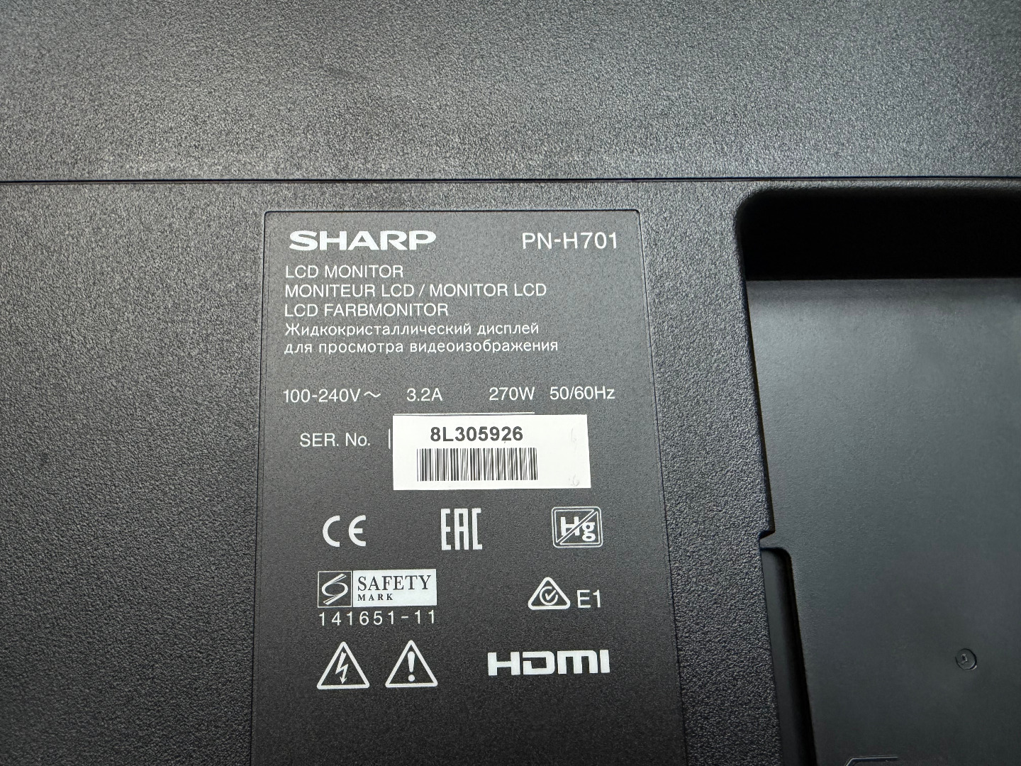 Zum Verkauf steht unser Sharp PN-H701 LCD-Display mit 70". Das Display ist technisch Einwandfrei und im guten Zustand. Fernbedienung, sowie ein weiteres Adapterkabel sind vorhanden.
