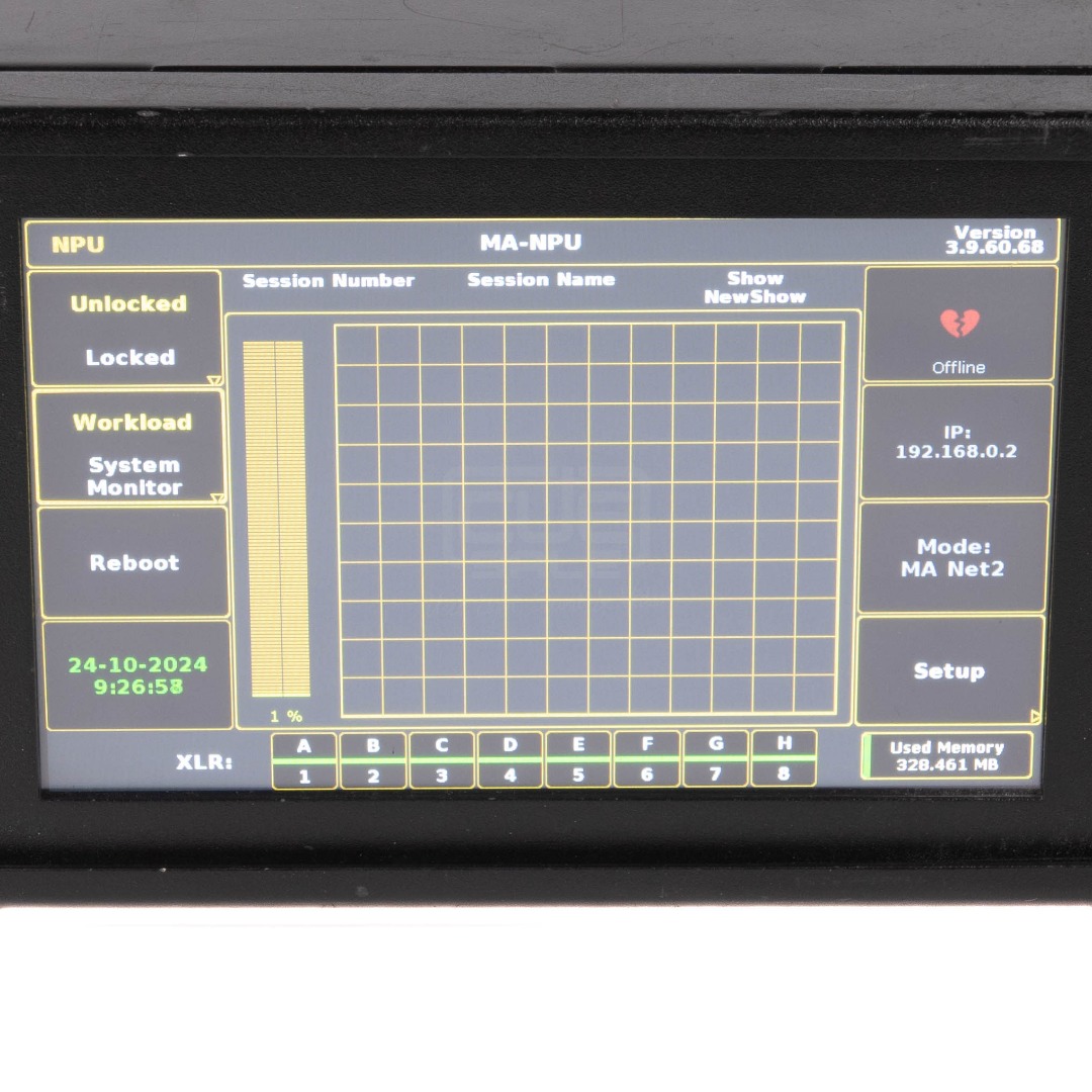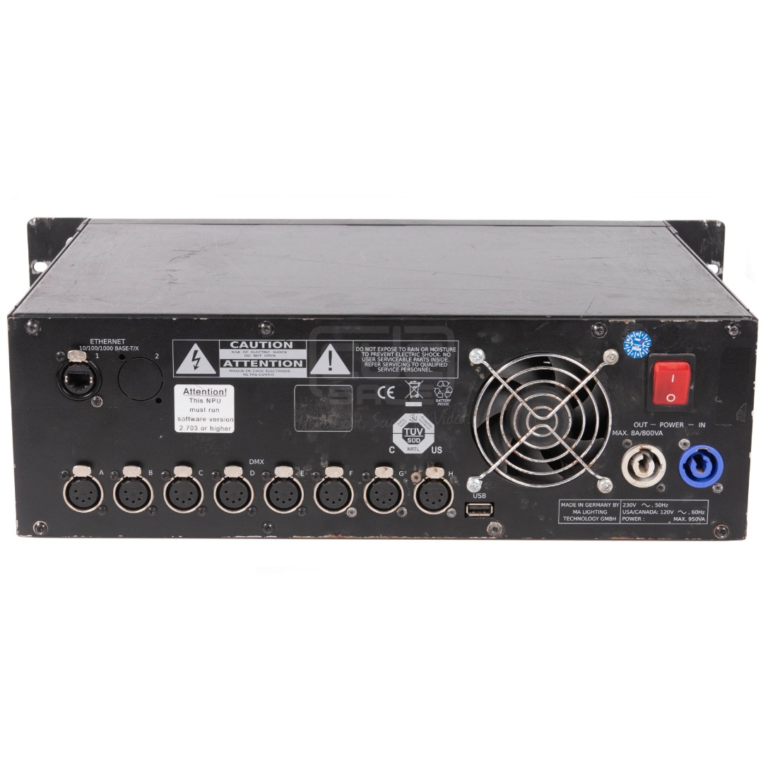 With an easy to read touchscreen the MA NPU allows intuitive use and easy access to all the important information. 8 x DMX XLR 5-pin connectors on the rear side of the MA NPU allow a most flexible use within the network environment.