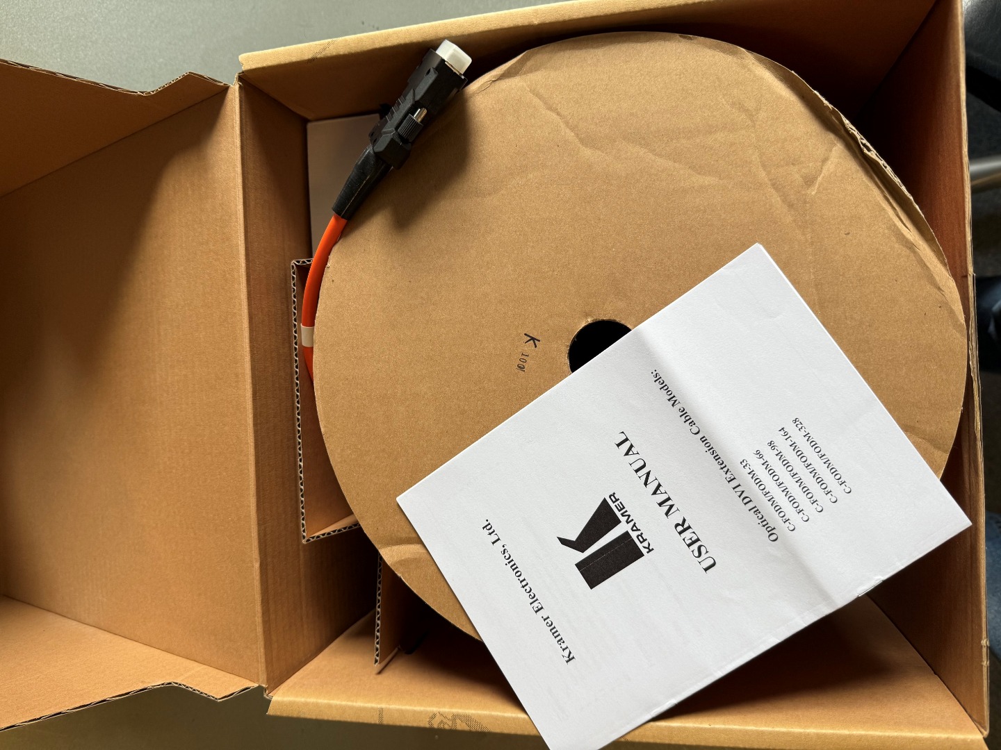 Zum Verkauf steht ein neues und unbenutztes Kramer DVI Glasfaserkabel mit einer Länge von 100 Metern,