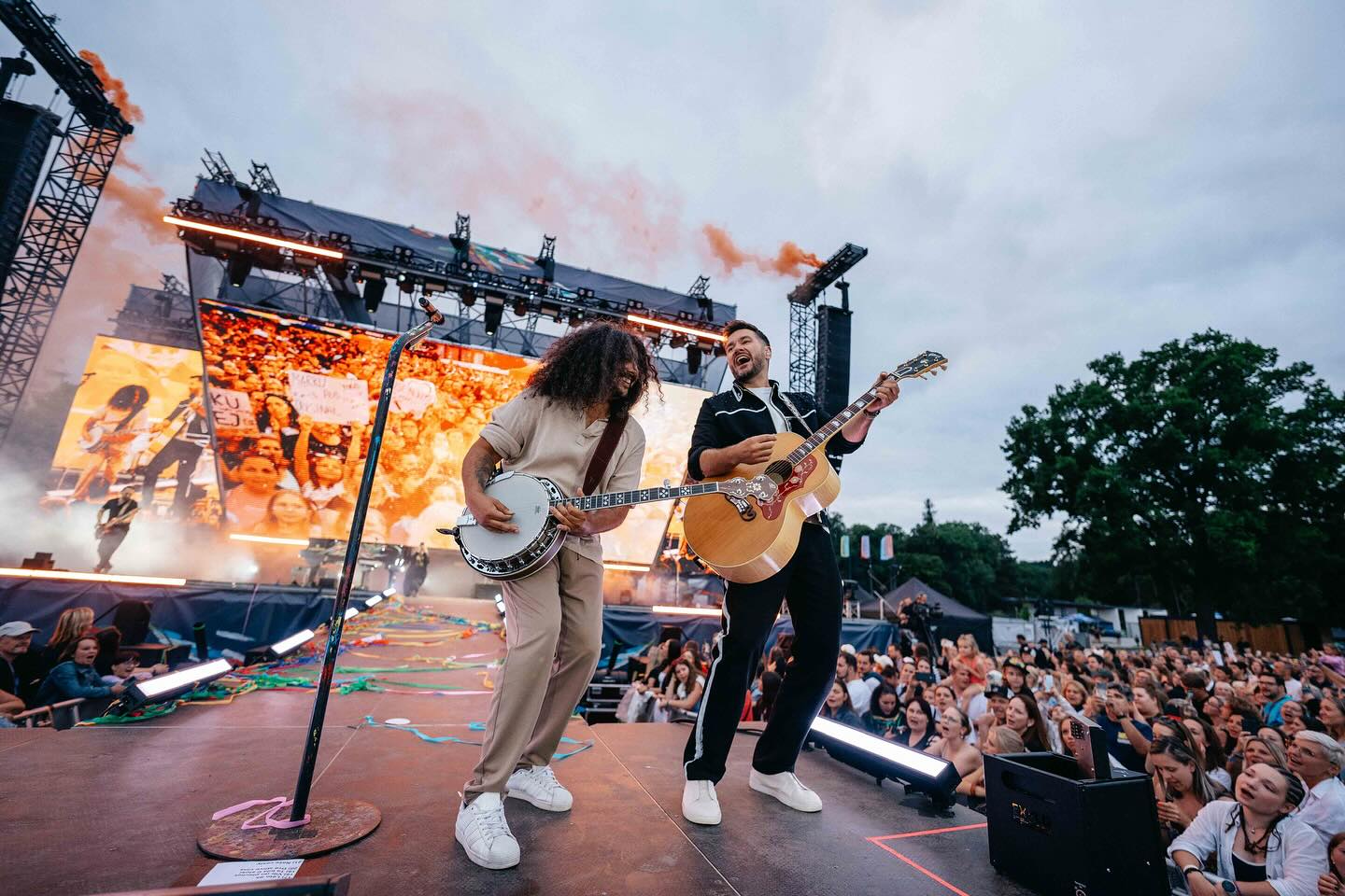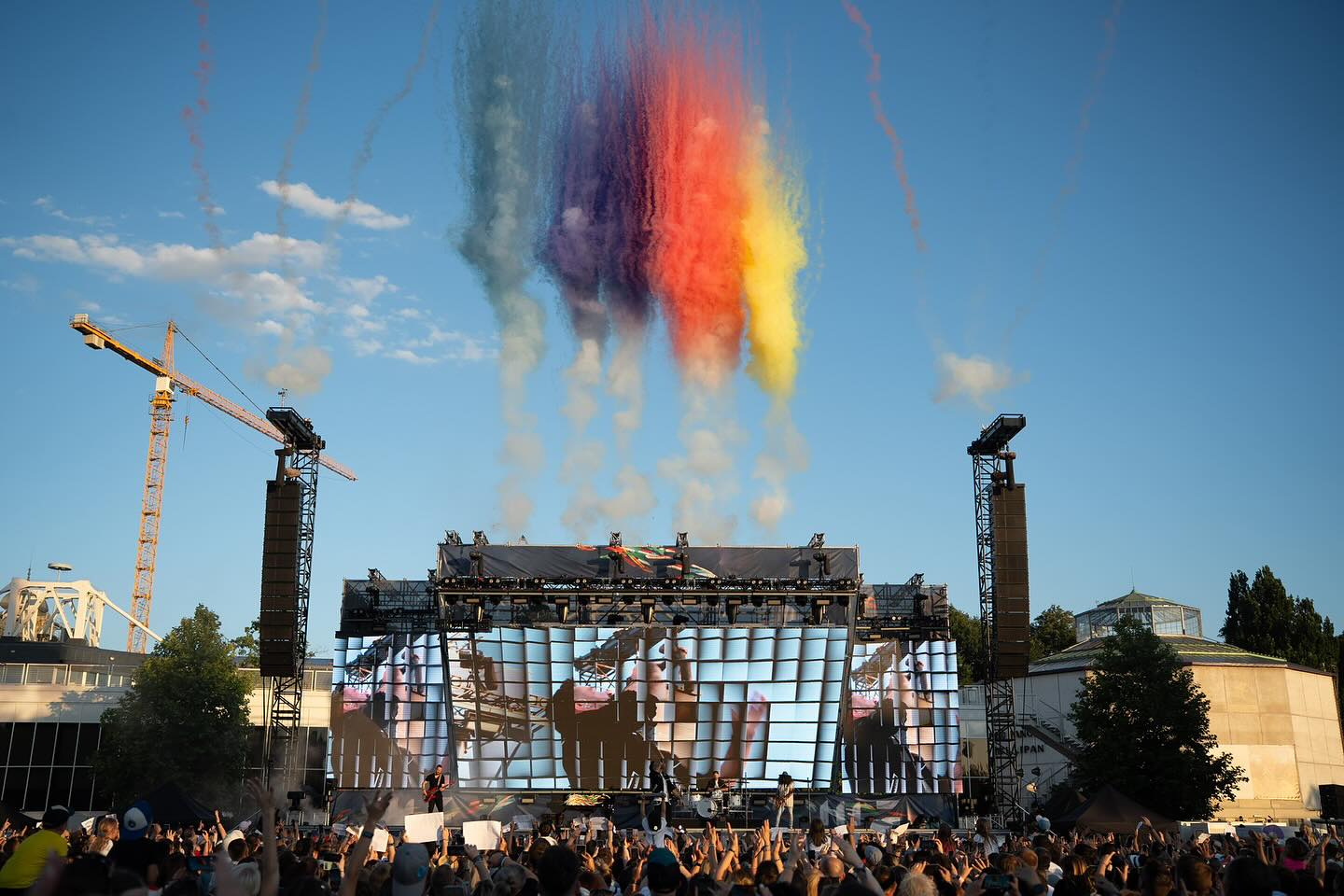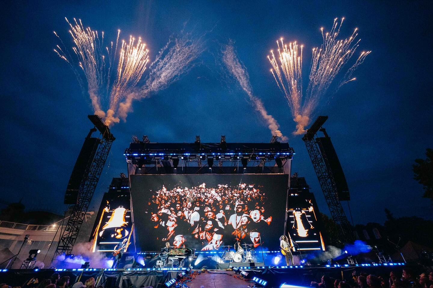 Certified, high-load steel PA towers from Area Four Industries / Milos, designed for large-scale concerts, festivals, and touring productions.
