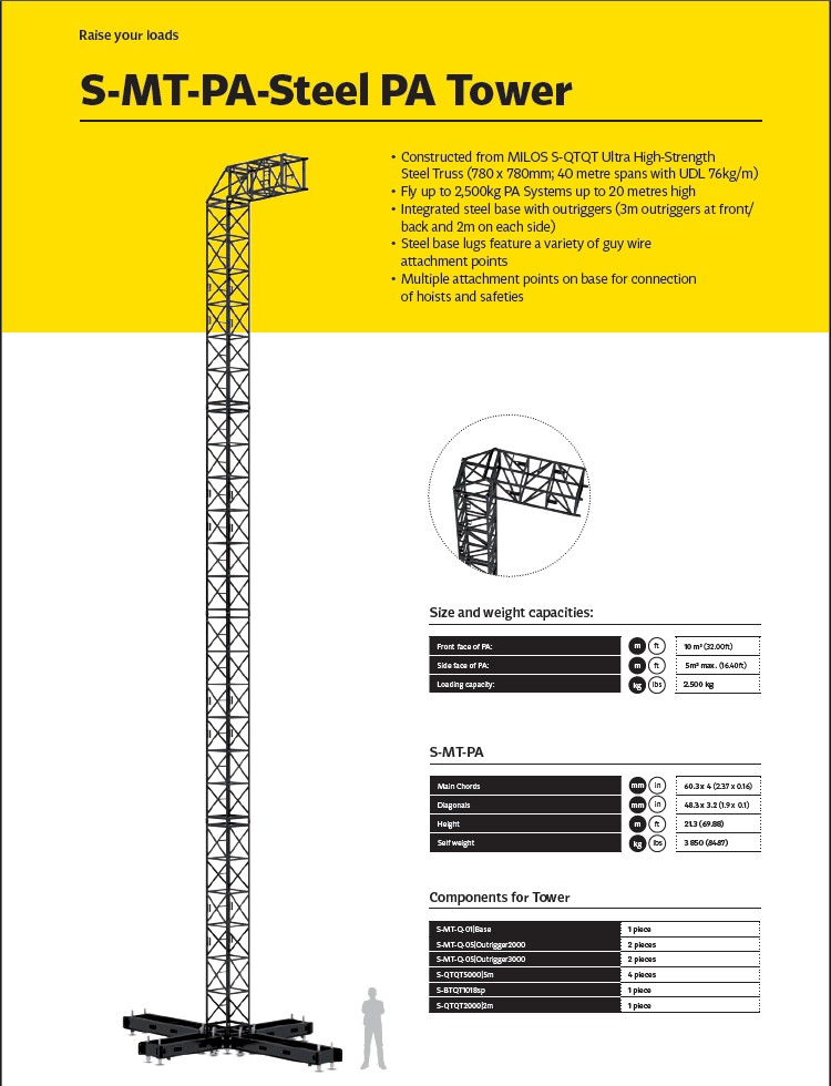 German-engineered reliability, certified strength, and fast, crane-free setup for heavy-duty PA and lighting applications.