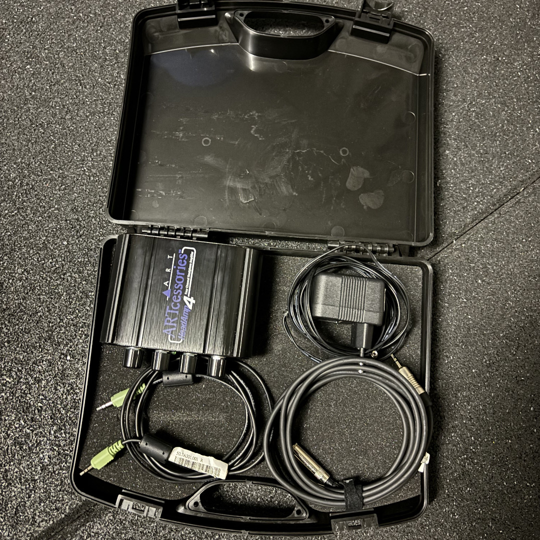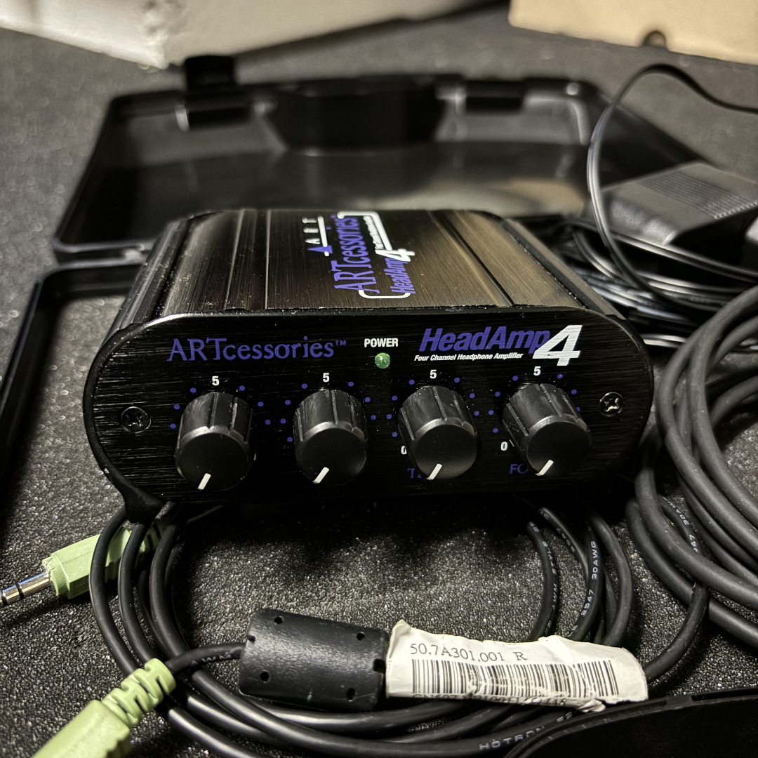 Zum Verkauf steht der 4-Kanal Kopfhörerverstärker HeadAmp 4 von ART. Das Gerät ist voll funktionstüchtig und in sehr gutem Zustand. Dabei ist das passende Netzteil, ein 1m 3,5mm Klinke Anschlusskabel sowie ein 2m 3,5mm Klinke Verlängerungskabel. Alles ist in passendem schwarzen Koffer verpackt.