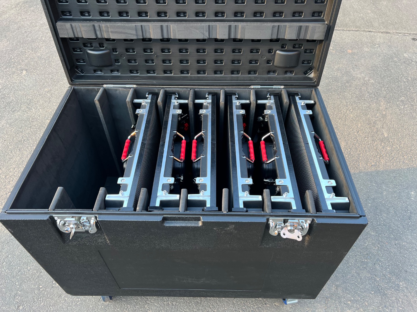 Zu 8 Modulen gehört jeweils ein Case inkl. Linkkabel (Cat + Strom)