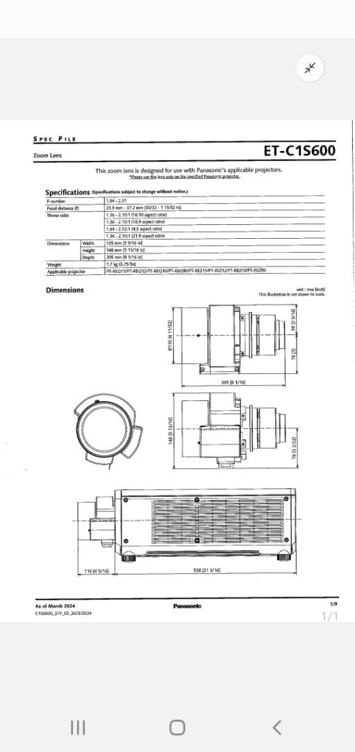 Verkauft wird ein technisch neuwertiges, voll funktionsfähiges PANASONIC ET-C1S600 Wechselobjektiv
