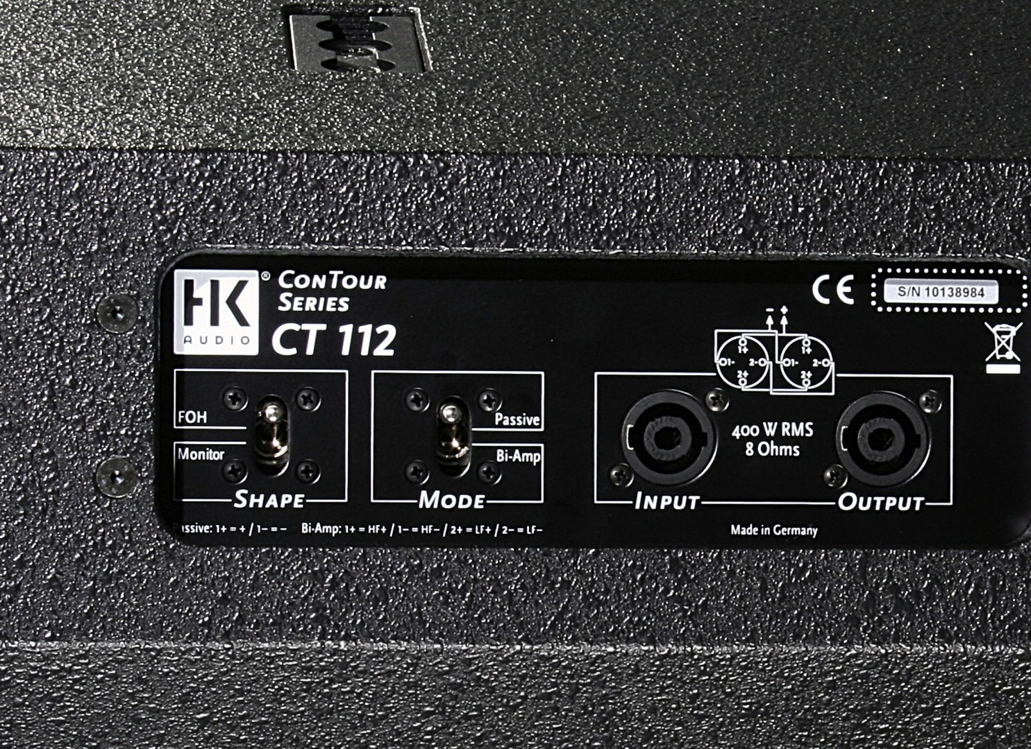 Durch ihr „Low Profile“ Gehäuse eignet sie sich auch hervorragend für anspruchsvolles Bühnenmonitoring. Mittels des Shape-Schalters auf der Rückseite kann die Frequenzweiche der CT 112 auf die unterschiedlichen Anforderungen Bühnenmonitor / FOH-Lautsprecher optimiert werden.