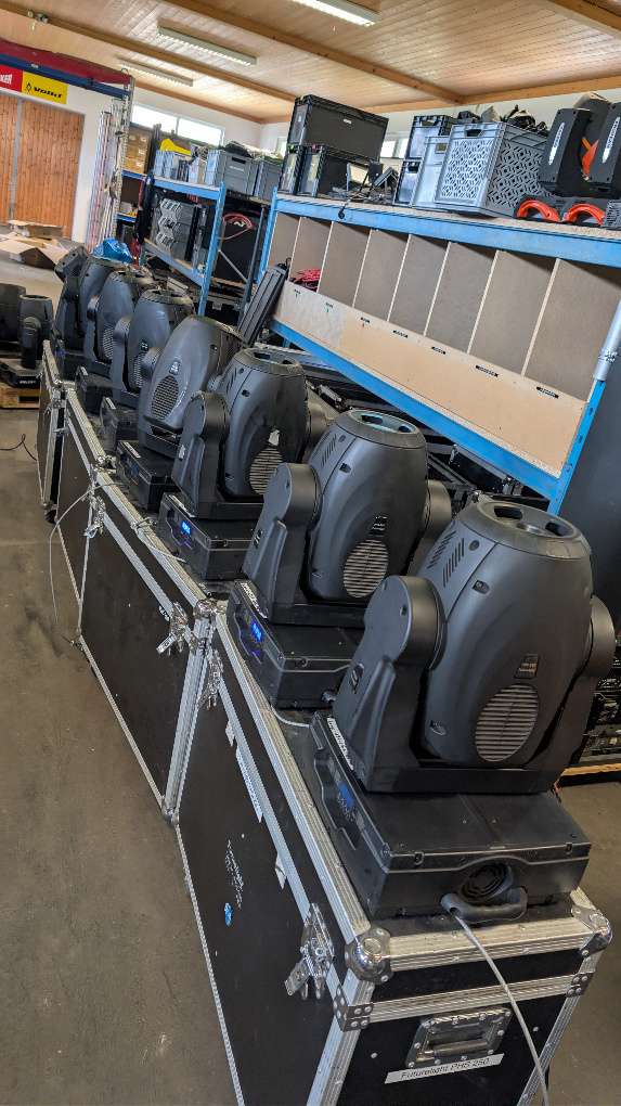 Die Moving Heads stammen aus laufendem, professionellem Einsatz, wurden regelmäßig gewartet und sind technisch solide, jedoch teilweise reparaturbedürftig.