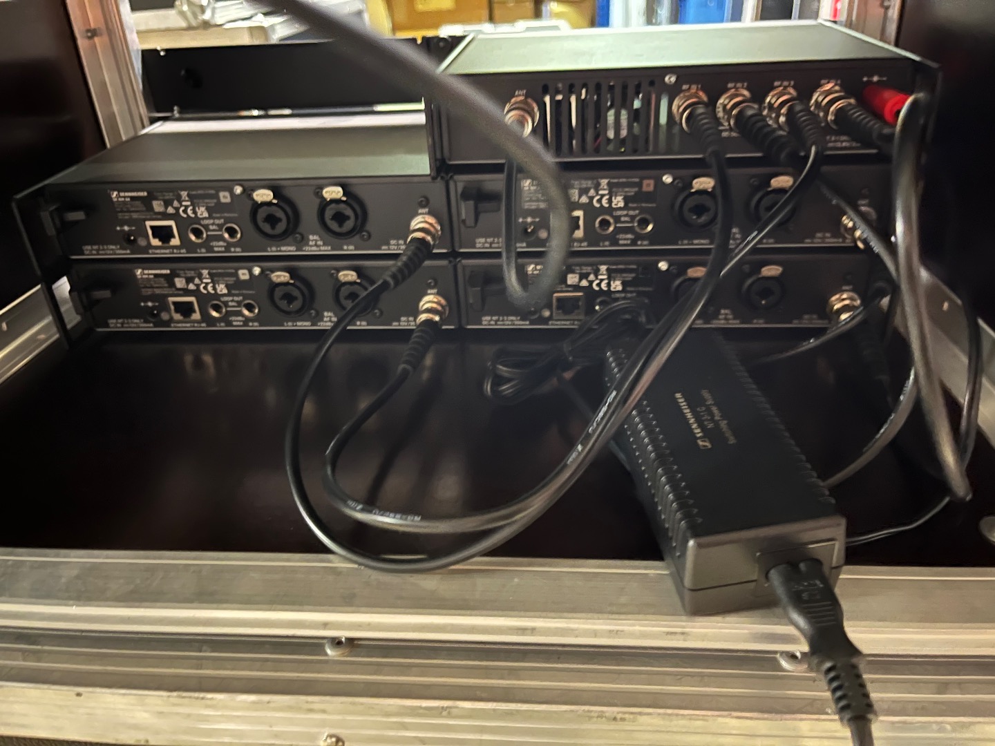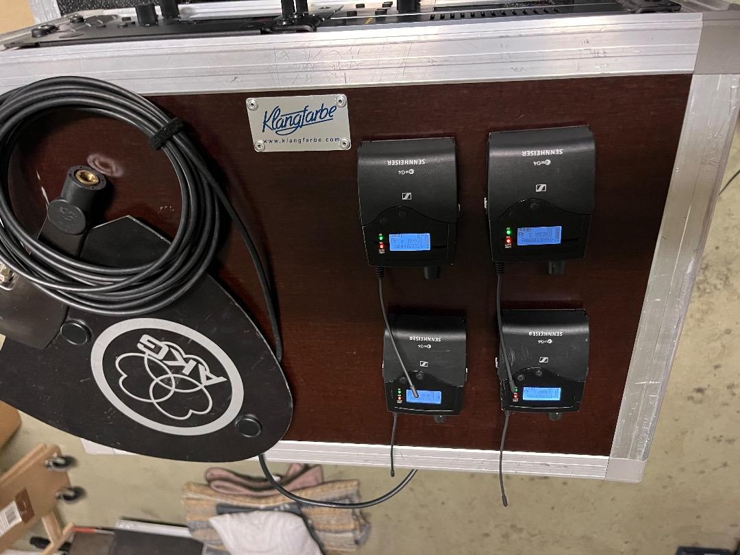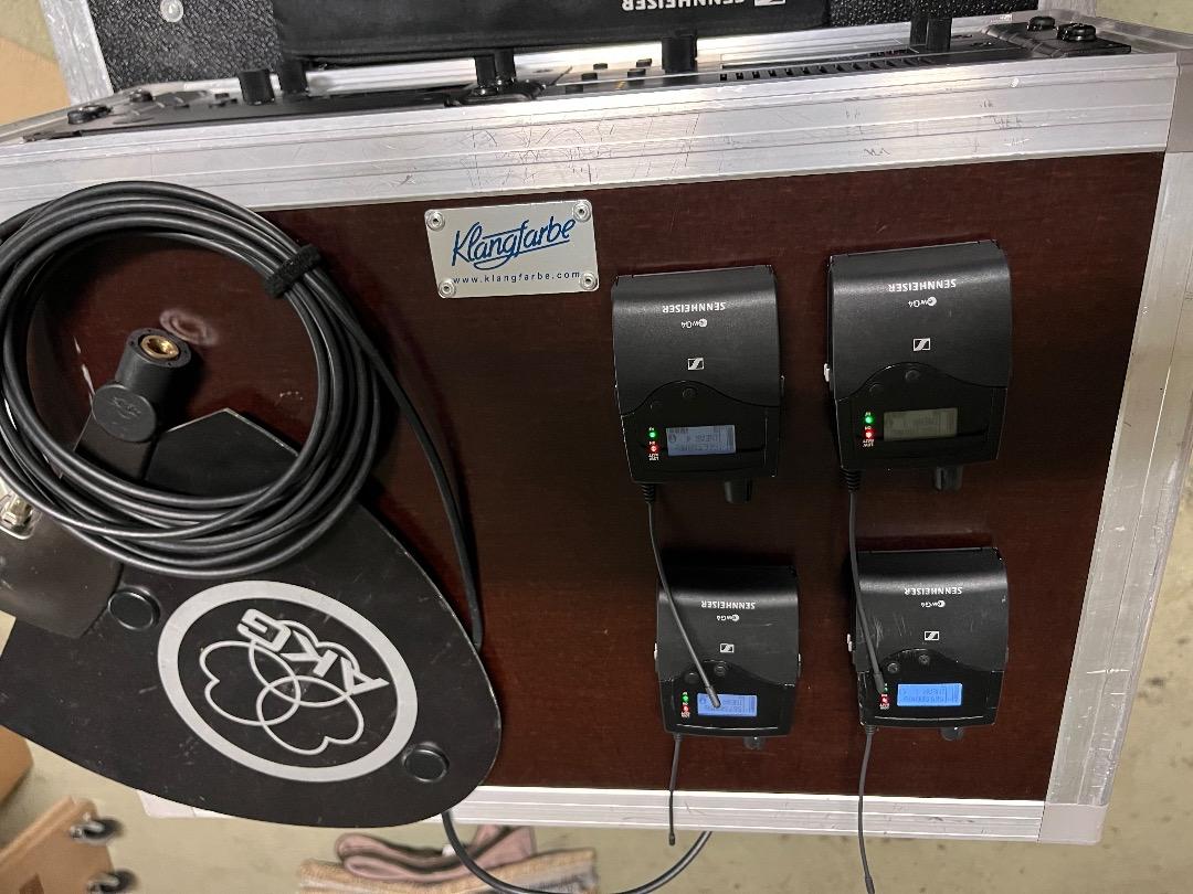 Zum Verkauf steht ein 4 Fach Inear Funk Set im Sennheiser G Band (566 - 608 MHz) mit 4 Bodypacks, Combiner und Richtantenne im Klangfarbe Rack.