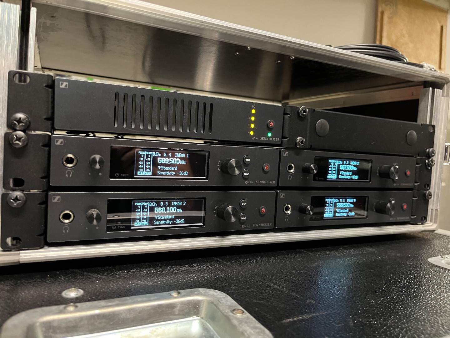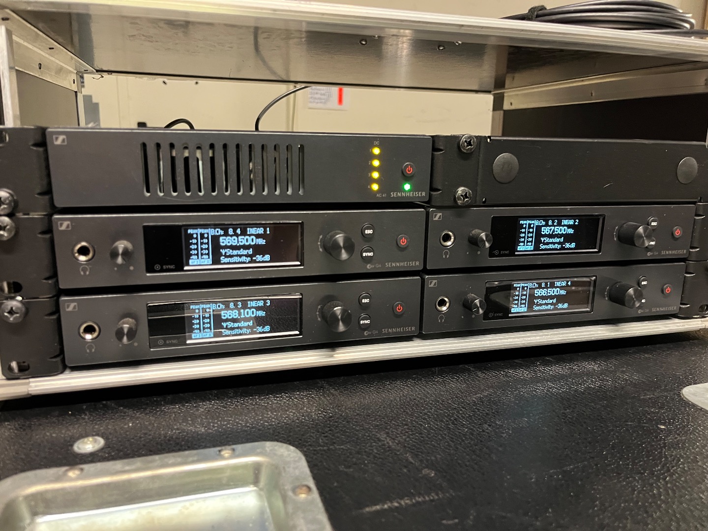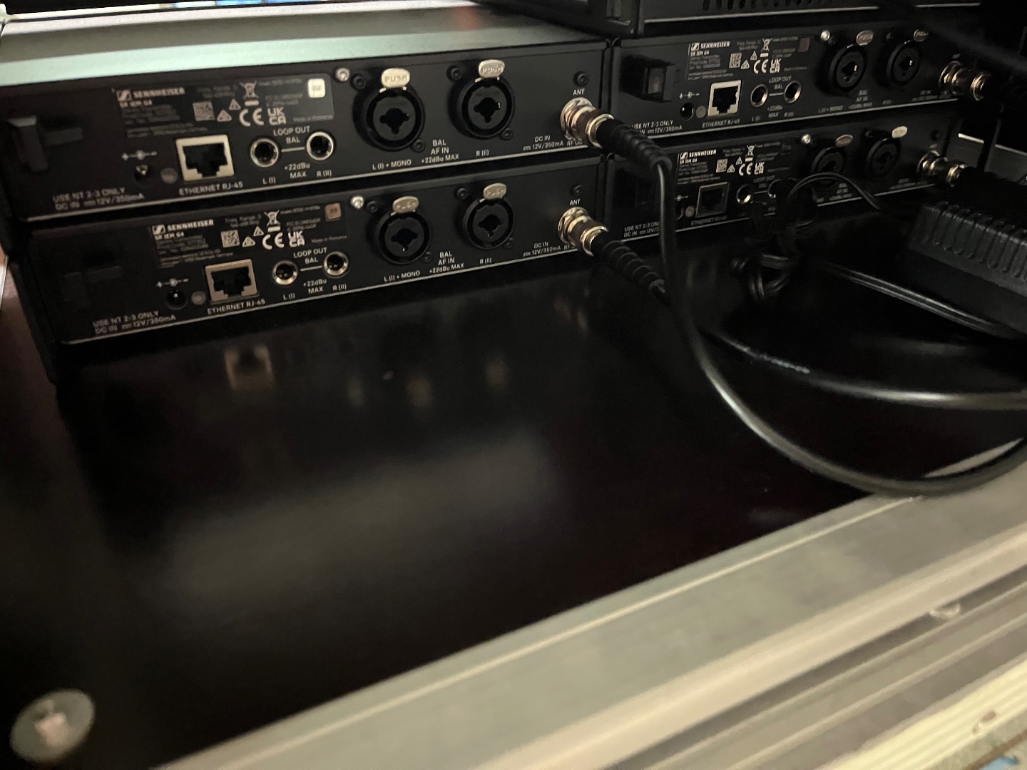 Zum Verkauf steht ein 4 Fach Inear Funk Set im Sennheiser G Band (566 - 608 MHz) mit 4 Bodypacks, Combiner und Richtantenne im Klangfarbe Rack.