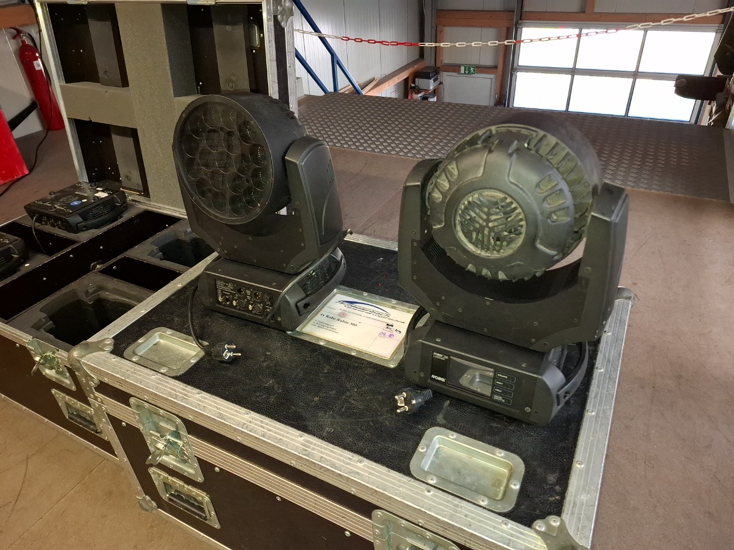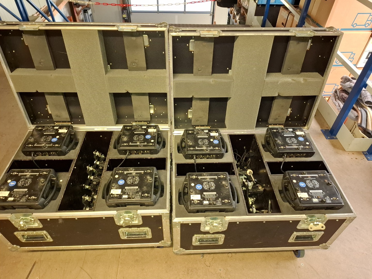Ich biete hiermit zwei Cases mit jeweils 4x Robin 300 LED Wash Movinglights zum Verkauf an.