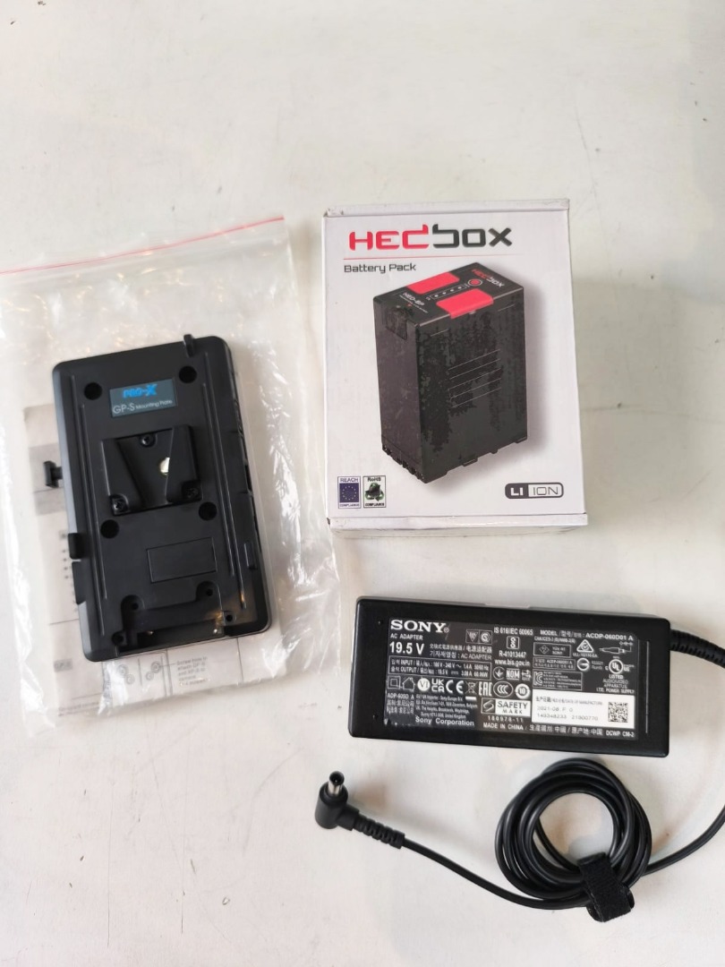 delivered with V-Mount plate +1 spare, power suply, shape arm and 1 new big battery
