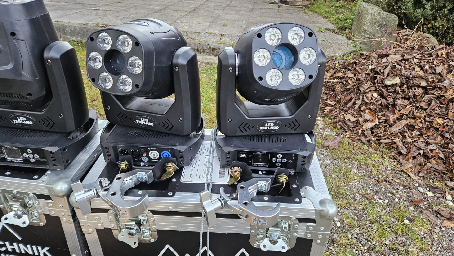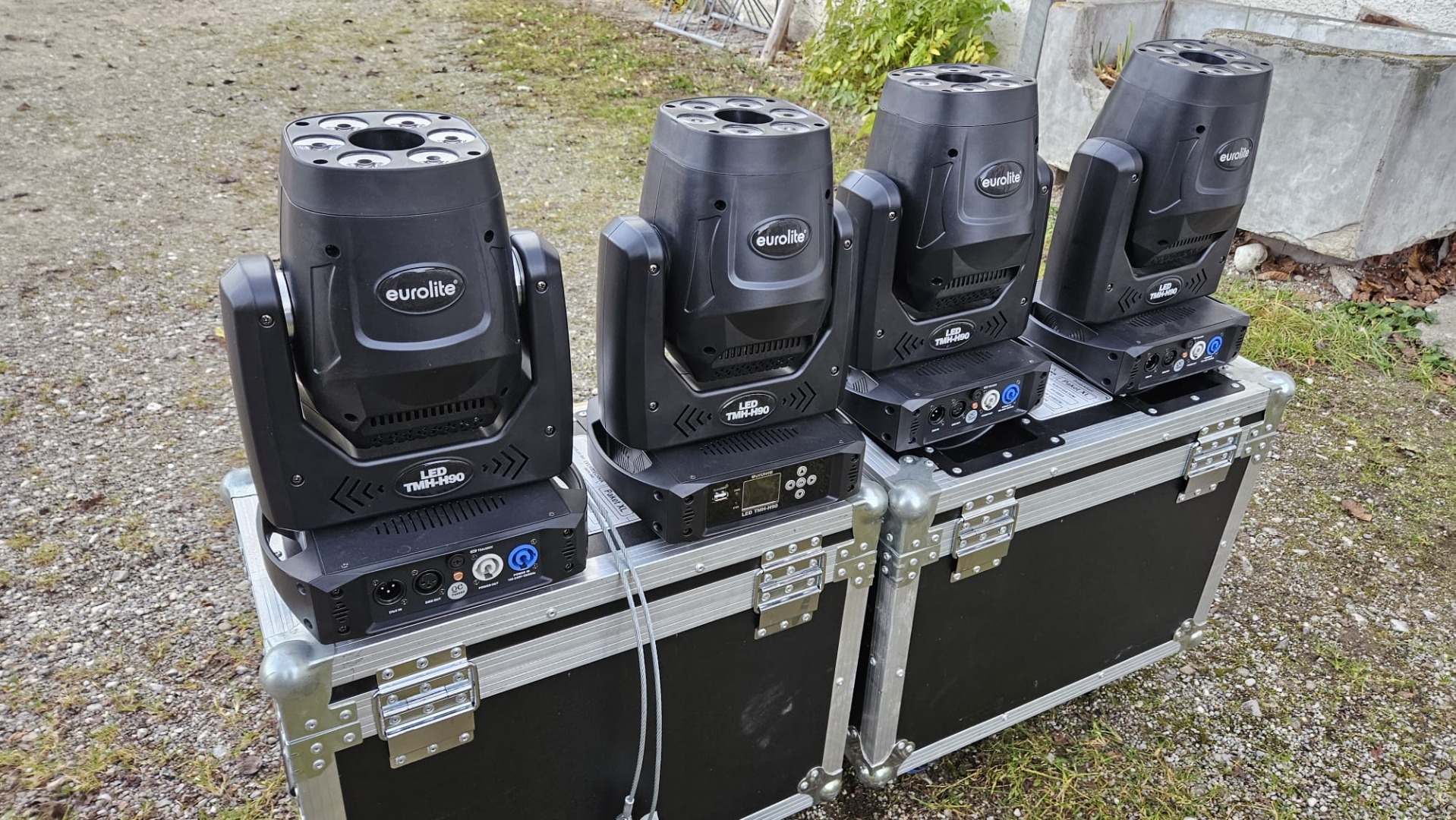 Zum Verkauf stehen 5x Eurolite TMH-H90 Hybrid Moving Heads, inklusive 2 original Eurolite 2in1 Flightcases (jeweils für 2 Geräte).