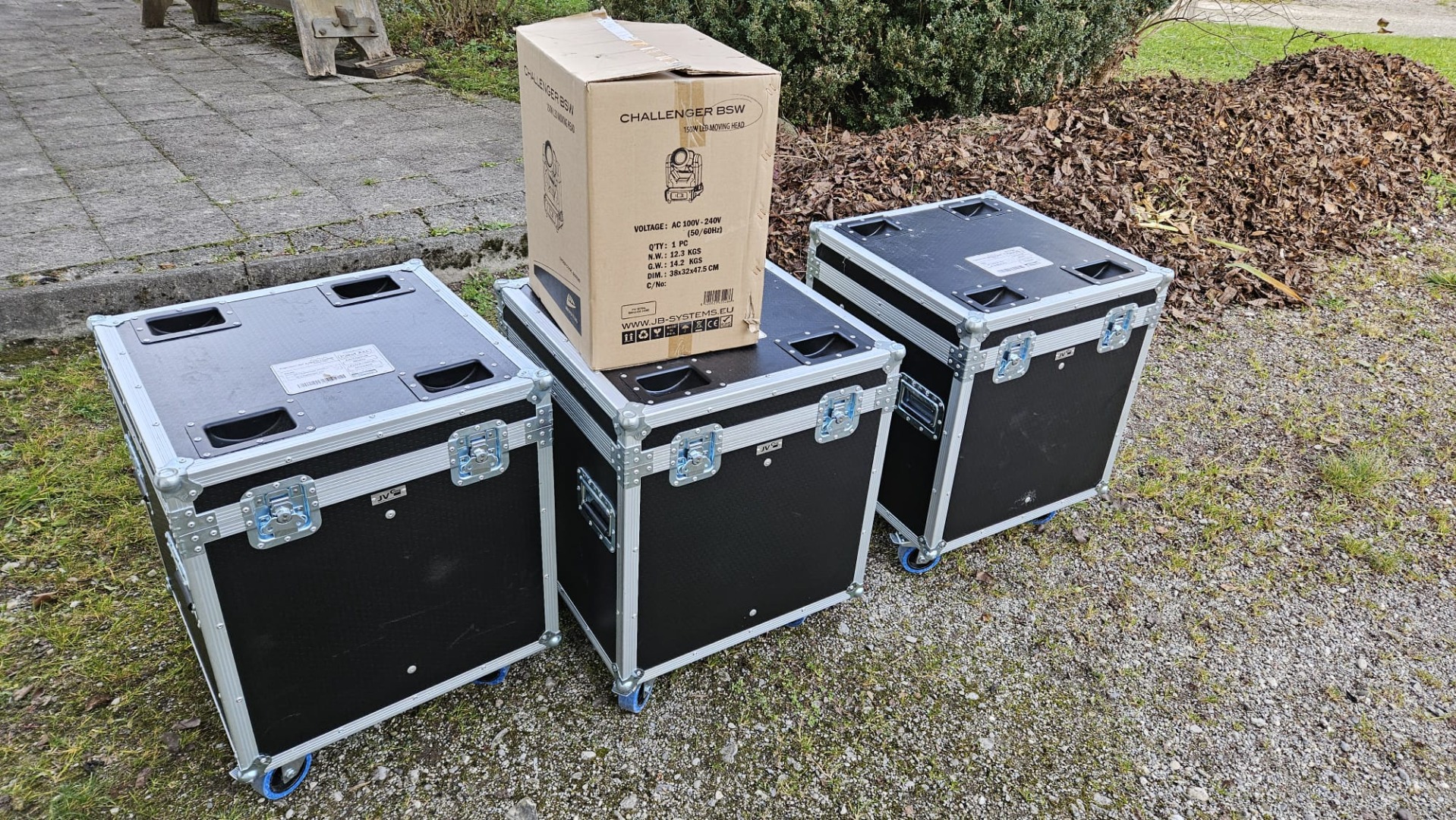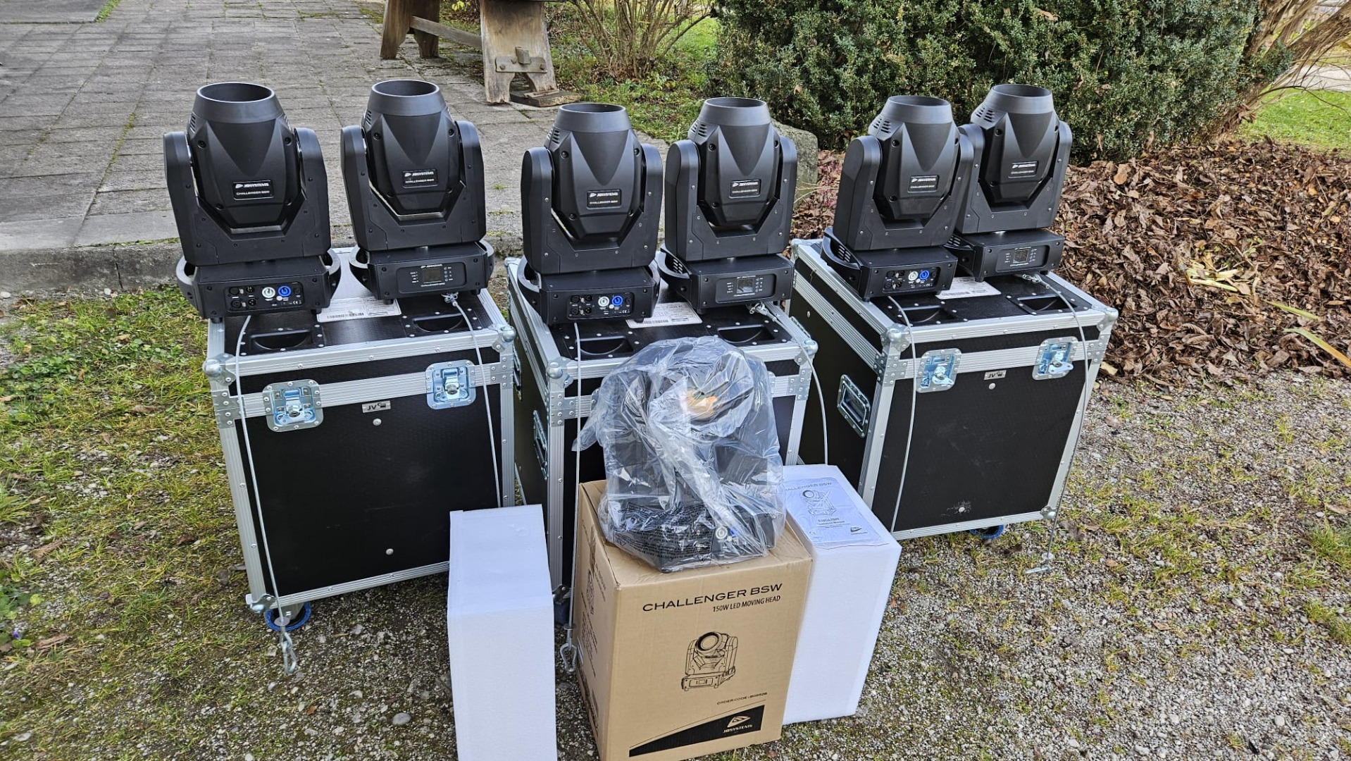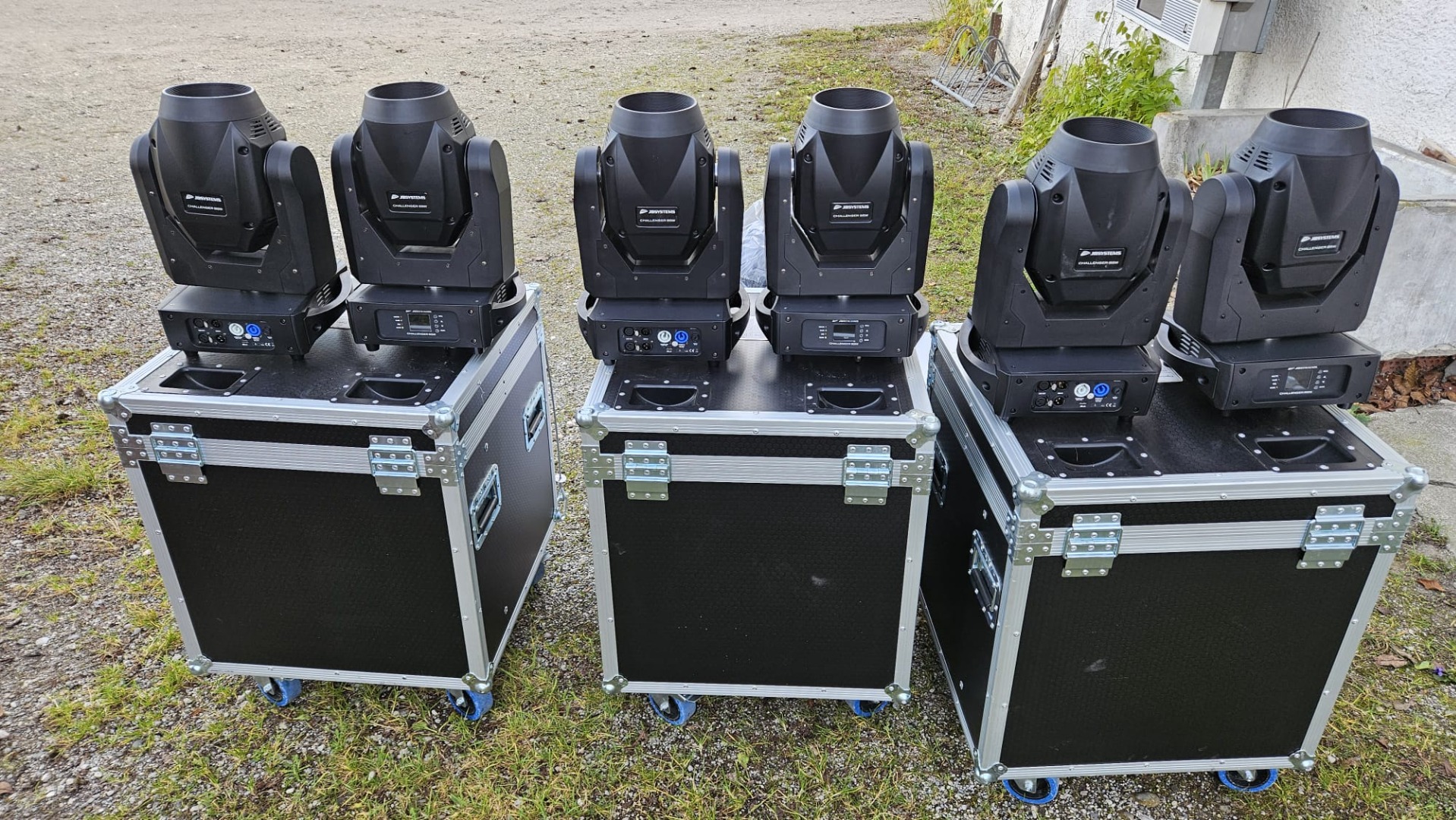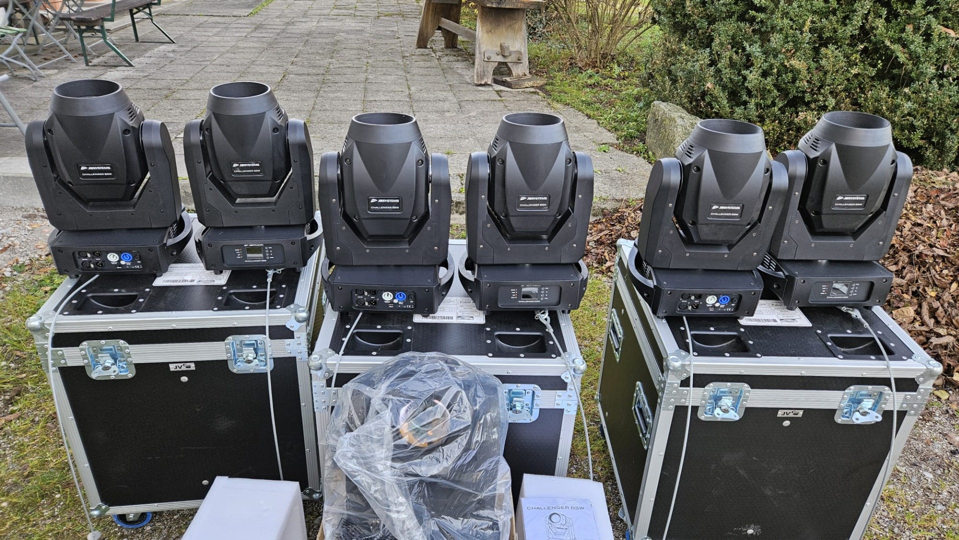 Zum Verkauf stehen 6 hochwertige JB-Systems Challenger BSW Moving Heads, inklusive 3 original JV-Flightcases 2in1