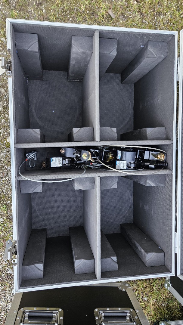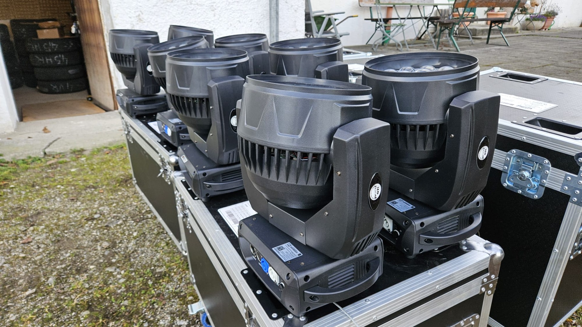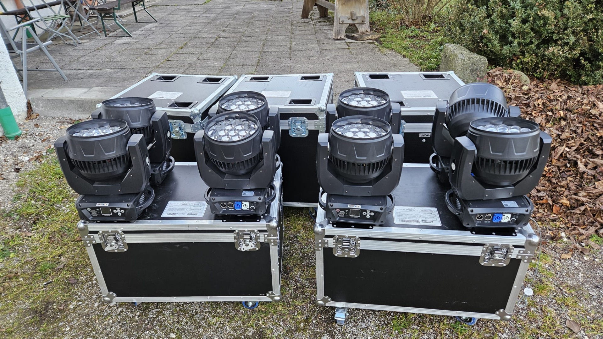 Die Geräte stammen aus einem gepflegten Eventbestand und wurden ausschließlich im Indoor-Bereich bei Corporate-Events eingesetzt. Alle Funktionen (Pan, Tilt, Zoom, Farb- und Dimmersteuerung) sind geprüft und voll funktionsfähig. Normale Gebrauchsspuren aus dem professionellen Einsatz sind vorhanden.