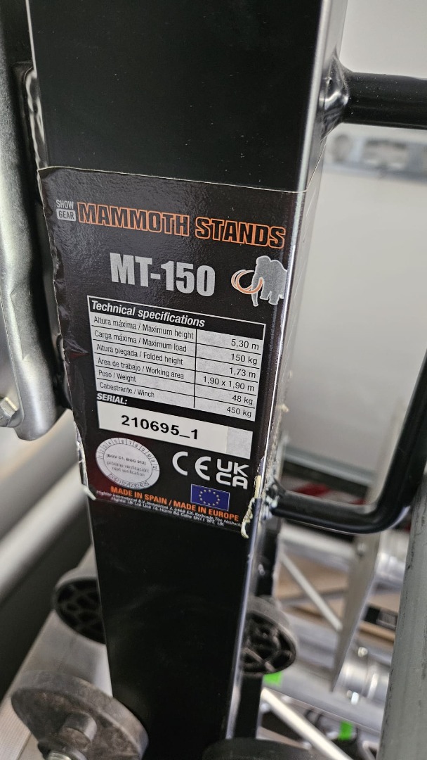 Zum Verkauf stehen 2x Showgear MT-150 Hebetürme (Lifttower) inklusive 2 original Trussadapteraufnahmen.