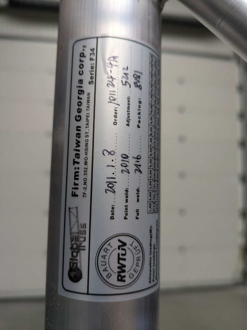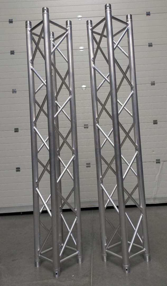 Die Traversen wurden einmal auf einer Veranstaltung als Projektionsstempel eingesetzt und sind in einen neuwertigen Zustand.