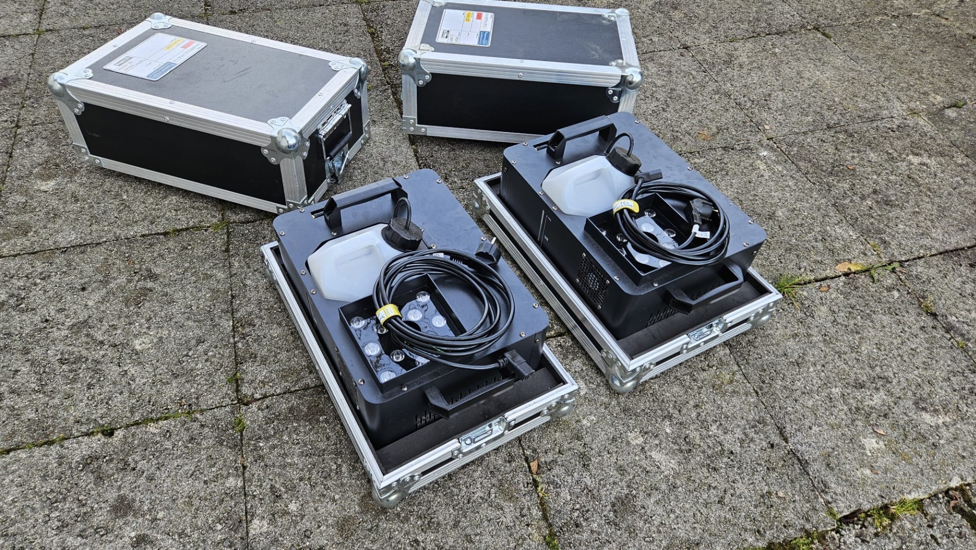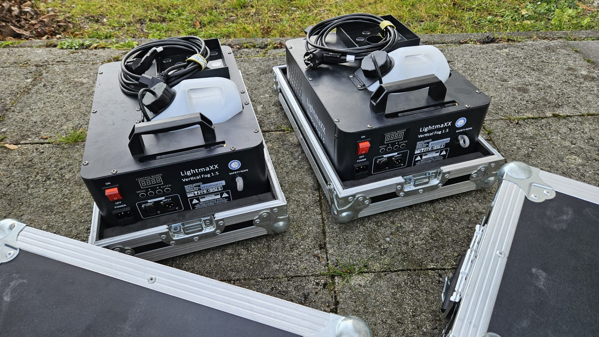 Zum Verkauf steht ein komplettes Nebel-Set bestehend aus 2x Lightmaxx Vertical Fog 1.5 (vertikale Nebelmaschinen), die im Case verbaut sind – Case inklusive.
