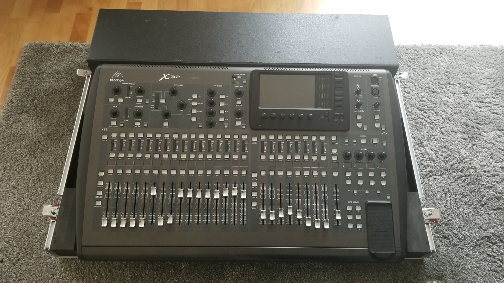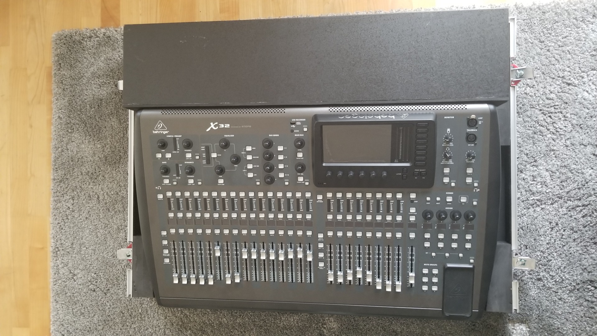 Zum Verkauf steht ein Behringer X32 Digitalmischpult in einem Gator Road Case mit Rollen und Doghouse.