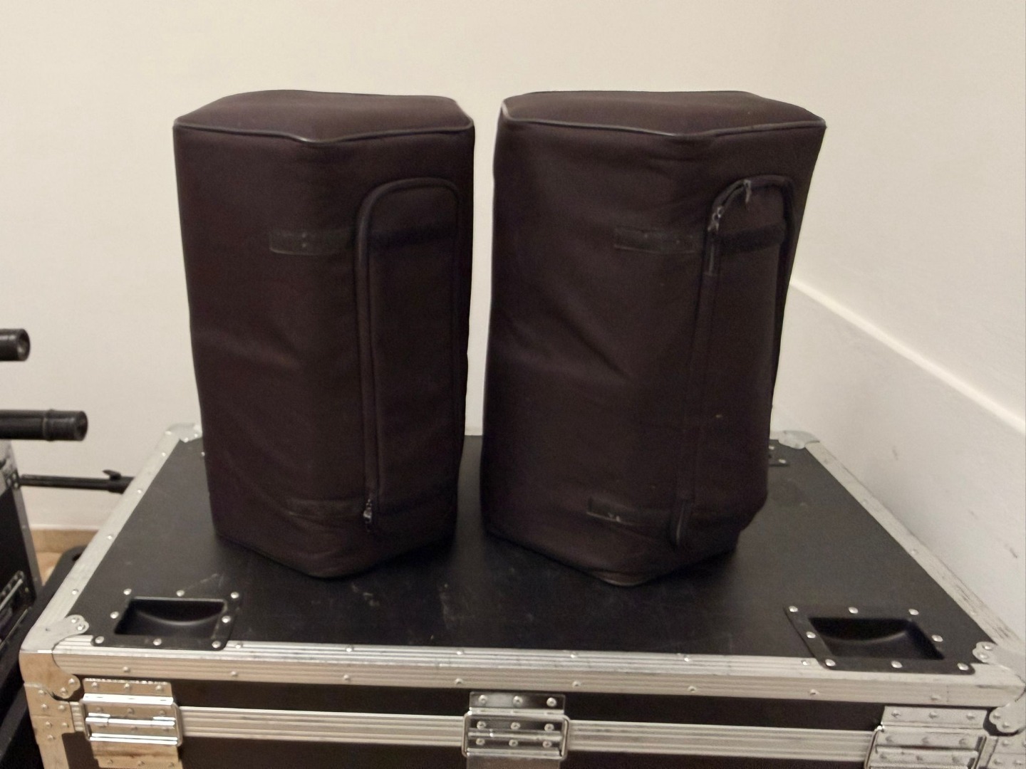 Die Hüllen sind ebenfalls noch in einem guten Zustand, die Reißverschlüsse sind in Ordnung. Jeder Lautsprecher hat zudem noch ein ordentliches Powercon Kabel dabei.