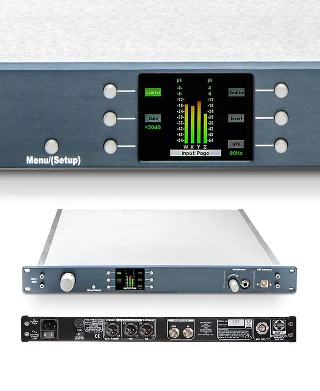 Das DSF-1-Mikrofonsystem besteht aus dem DSF1-Mikrofon und der dazugehörigen Rack-Control-Box. Es ist für den Konzert- und Rundfunkmarkt konzipiert und für die einfache Installation in Veranstaltungsorten wie Konzertsälen, Opernhäusern und anderen Orten, an denen eine qualitativ hochwertige und flexible Aufnahmelösung erforderlich ist. Es verfügt über B-FormatTM-Ausgänge sowie einen vollständig steuerbaren Stereo-Ausgang für Aufnahme und Kopfhörerüberwachung. Das polare Muster, die Breite, der Neigungswinkel und die Rotation des Stereo-Ausgangs können vollständig vom Prozessor aus gesteuert werden. Das Mikrofon kann mit "End-Fire" und "Inverted" ausgestattet werden, ebenso wie auf herkömmliche Weise für ultimative Flexibilität. Die B-format™-Ausgänge können auch aufgezeichnet und anschließend in einer DAW mit dem mitgelieferten SurroundZone-Plug-In verarbeitet werden, sodass der Benutzer beliebige Surround-Formate aus der Originalquelle erzeugen kann.