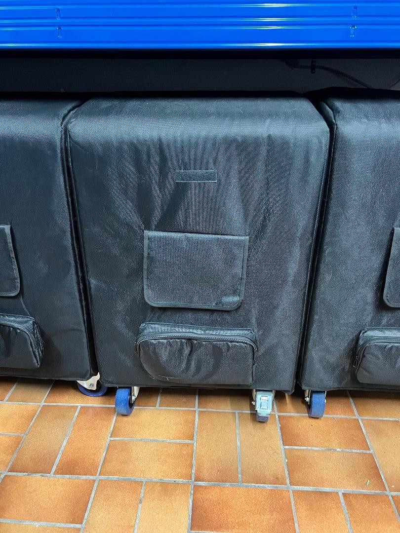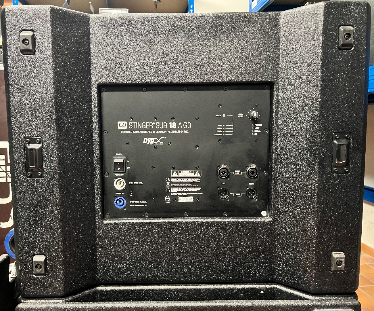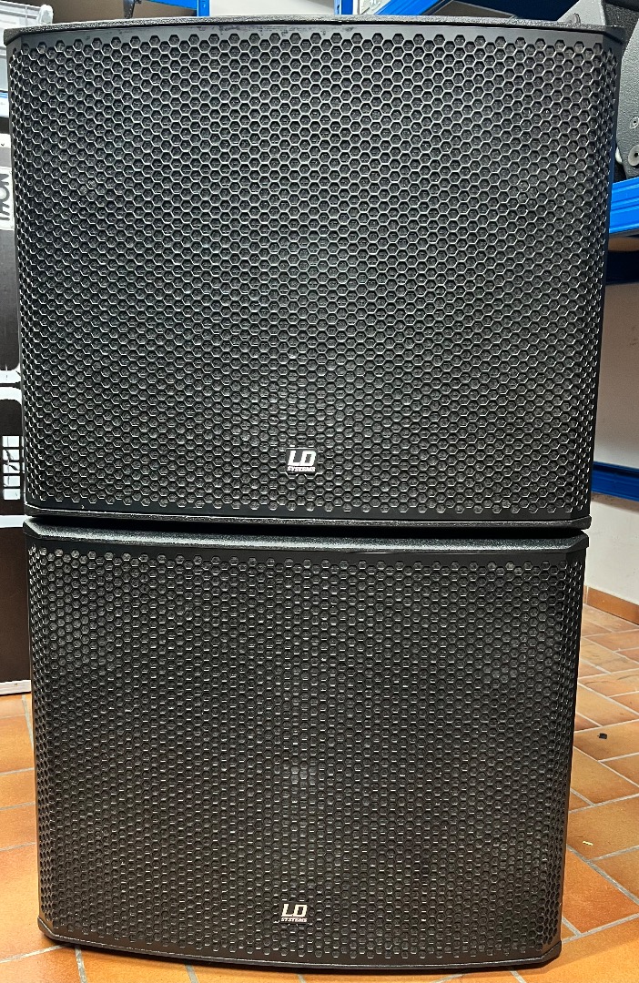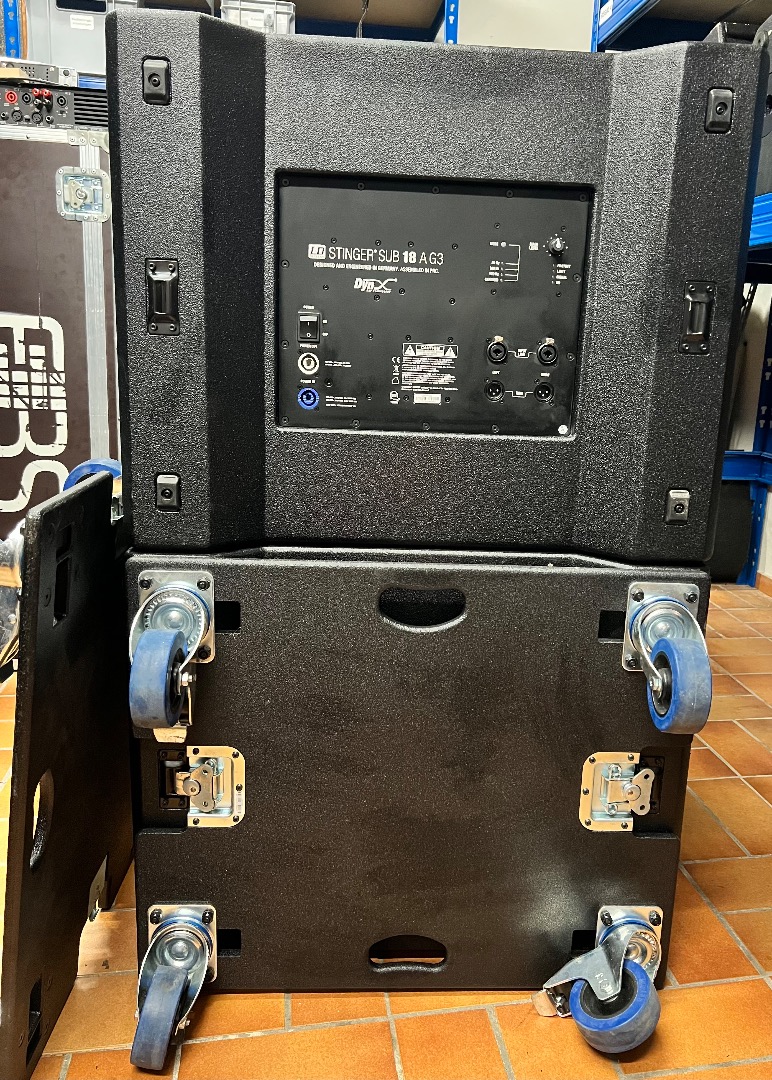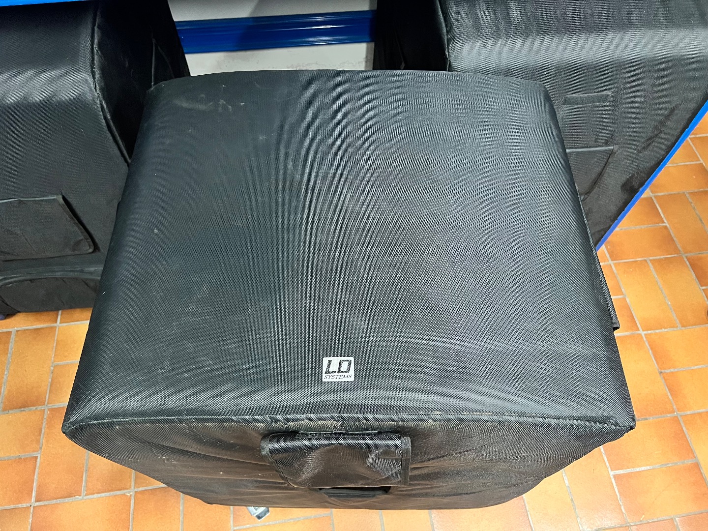 Wir verkaufen unsere 4 LD Systems Stinger SUB 18A G3 inkl. originalem abnehmbaren Rollbrett und originaler Schutzhülle mit integriertem Fach für das Anschlusskabel.