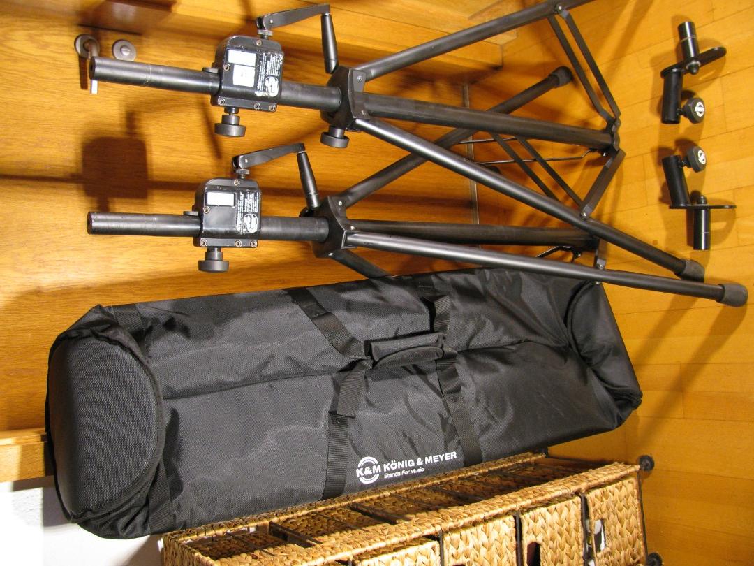 K&M 213 Profi Boxenstative mit Kurbelgehäuse + K&M Schrägsteller + K&M Transporthülle neu