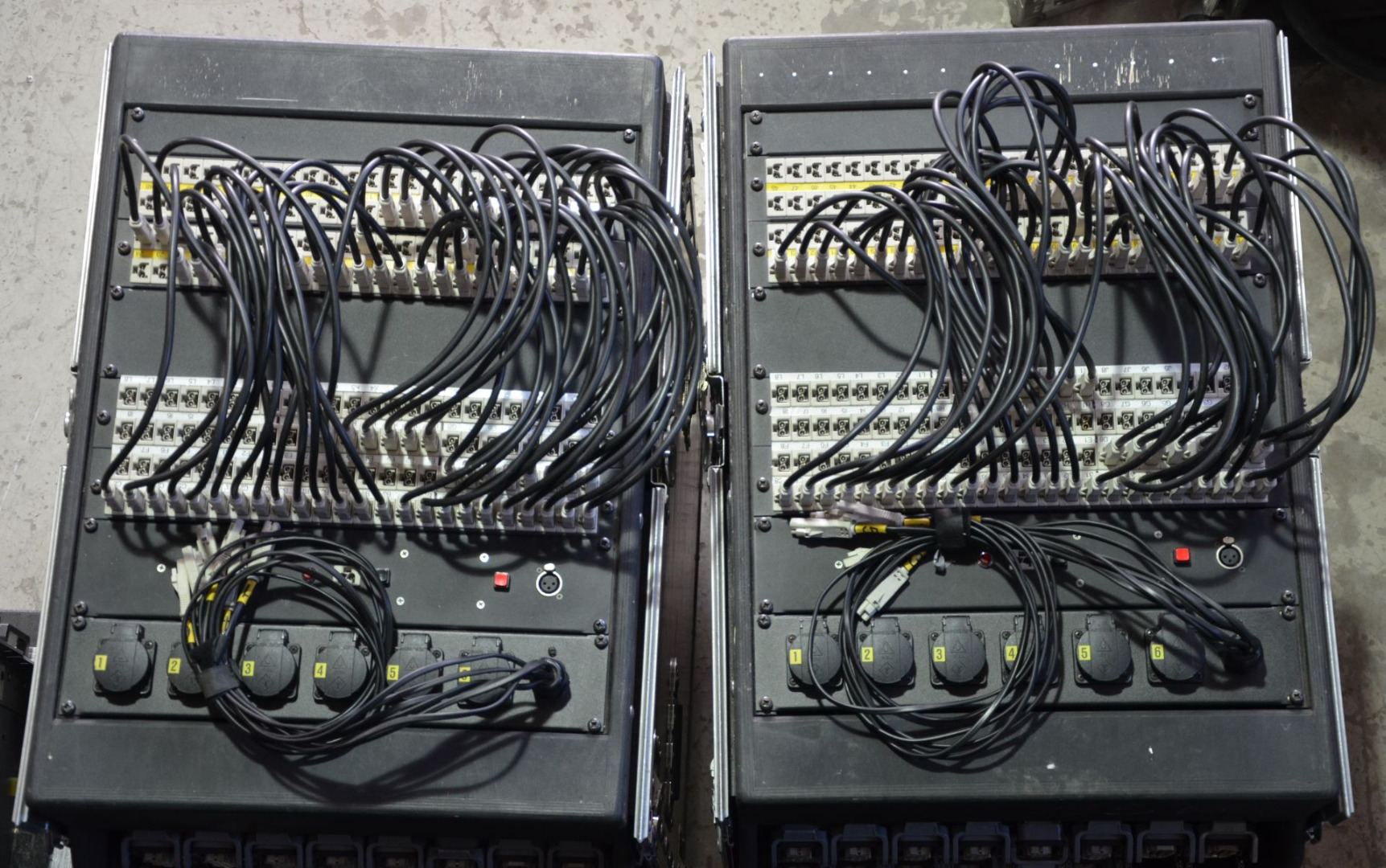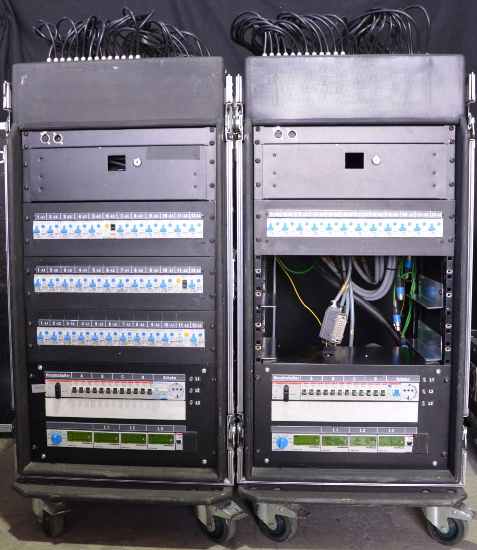 - 1x Stromverteiler 125 A CEE mit Anzeige A/V mit 4x 63 A CEE Abgängen