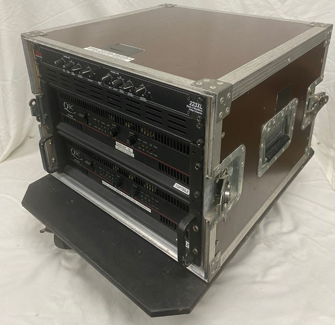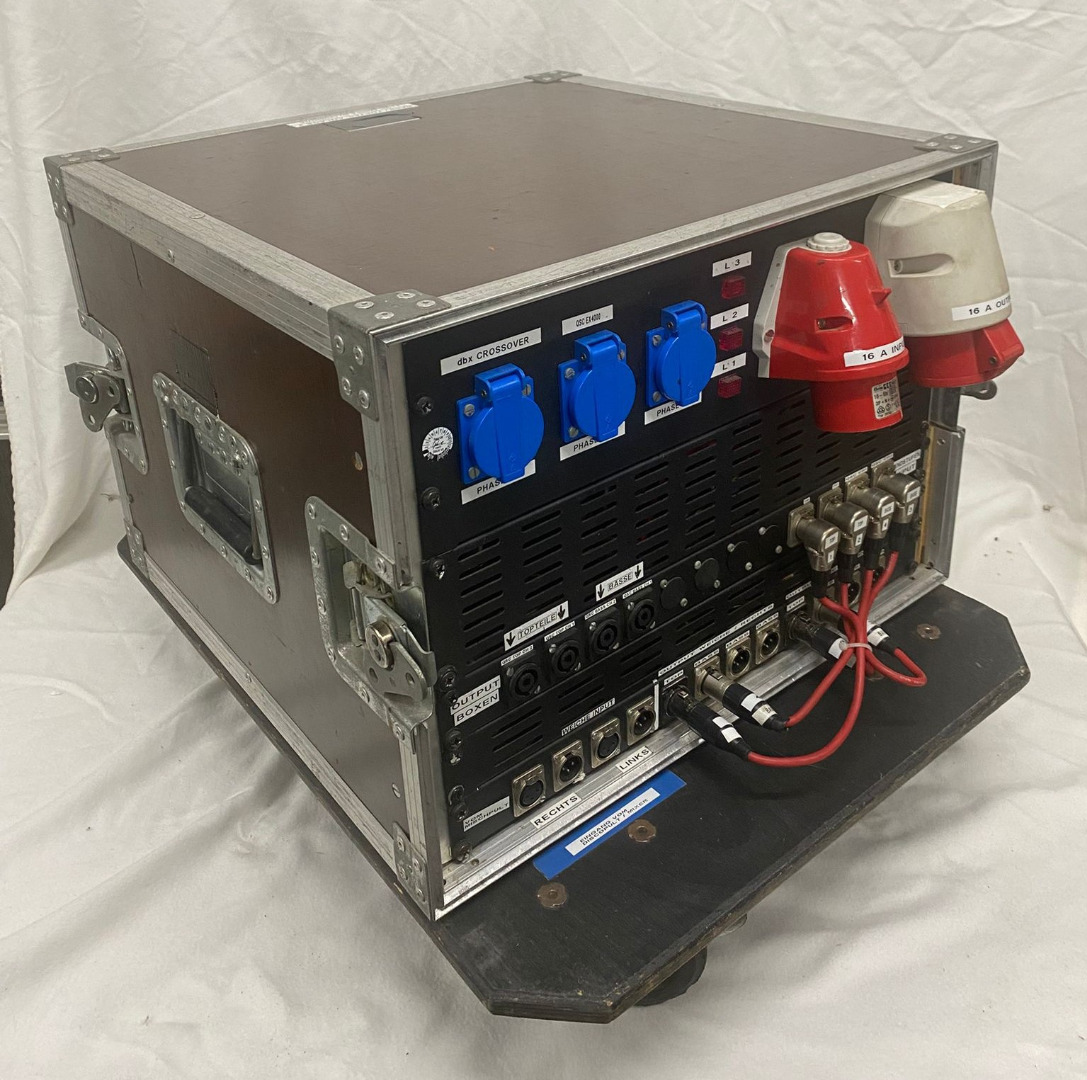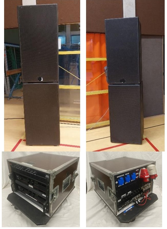 Im Rack ist alles vorverkabelt um 2. oder 3. Bassboxen anzuschließen und ist dann mit 16 A CEE Kraft zu betreiben!