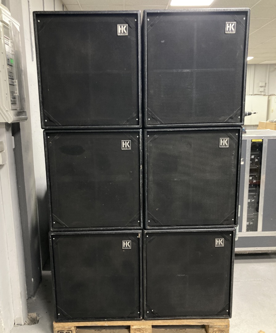 Zum Verkauf stehen insgesamt 6x HK Audio RL118 horngeladene PA Subwoofer. Fünf Stück sind voll funktionsfähig, einer ist defekt.