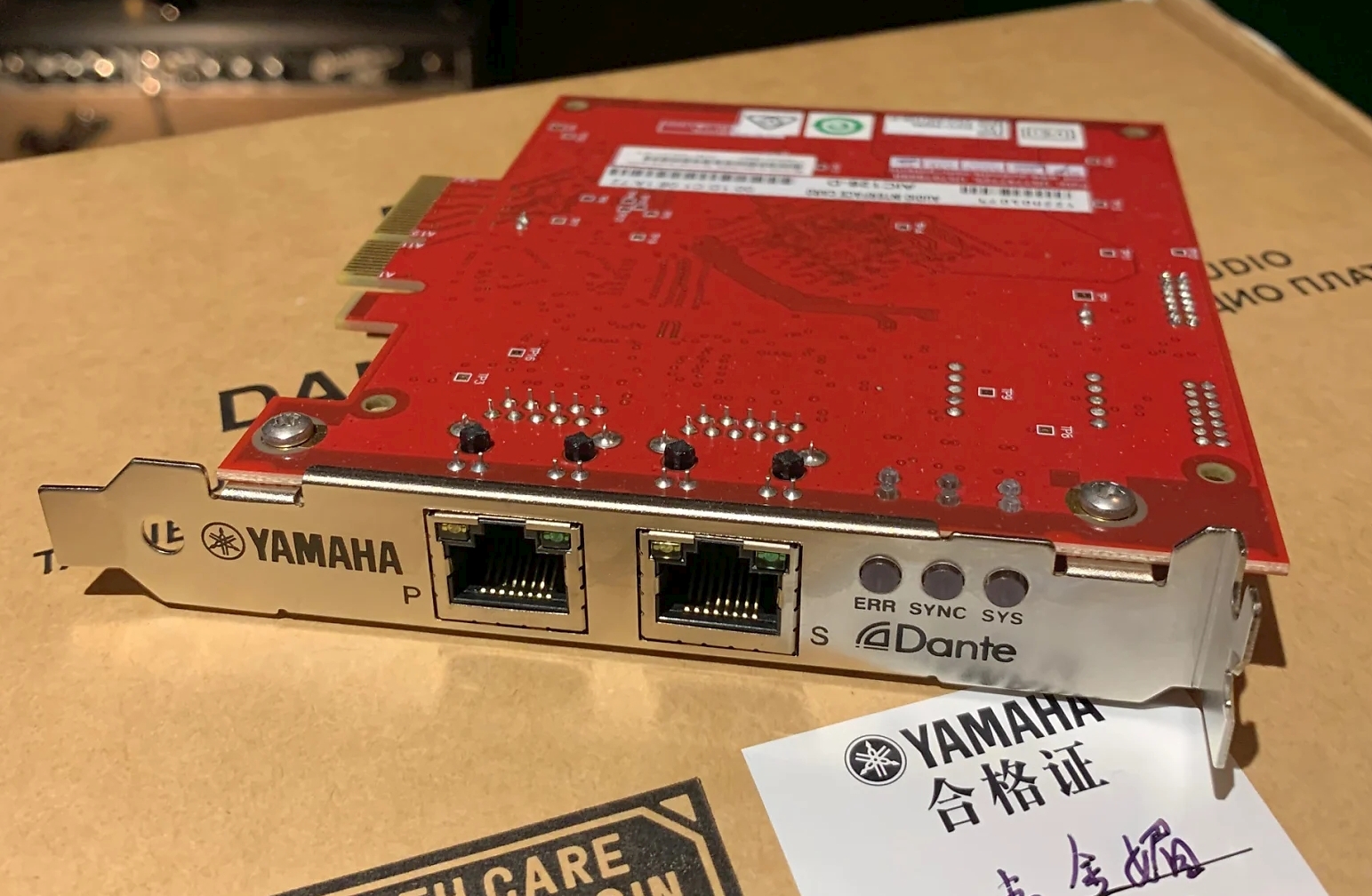 Die von mir in diesem System genutzte YAMAHA AIC128-D DANTE ACCELERATOR Card , PCIe Dante Karte 128 I/O, in einer weiteren Auktion.