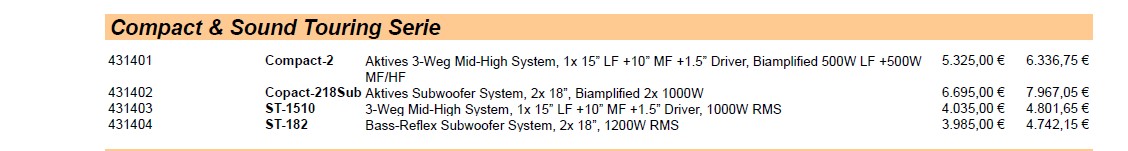 15" + 10" + 4" driver on 1,5" horn, List price from new: 24.312.00 euros. -
