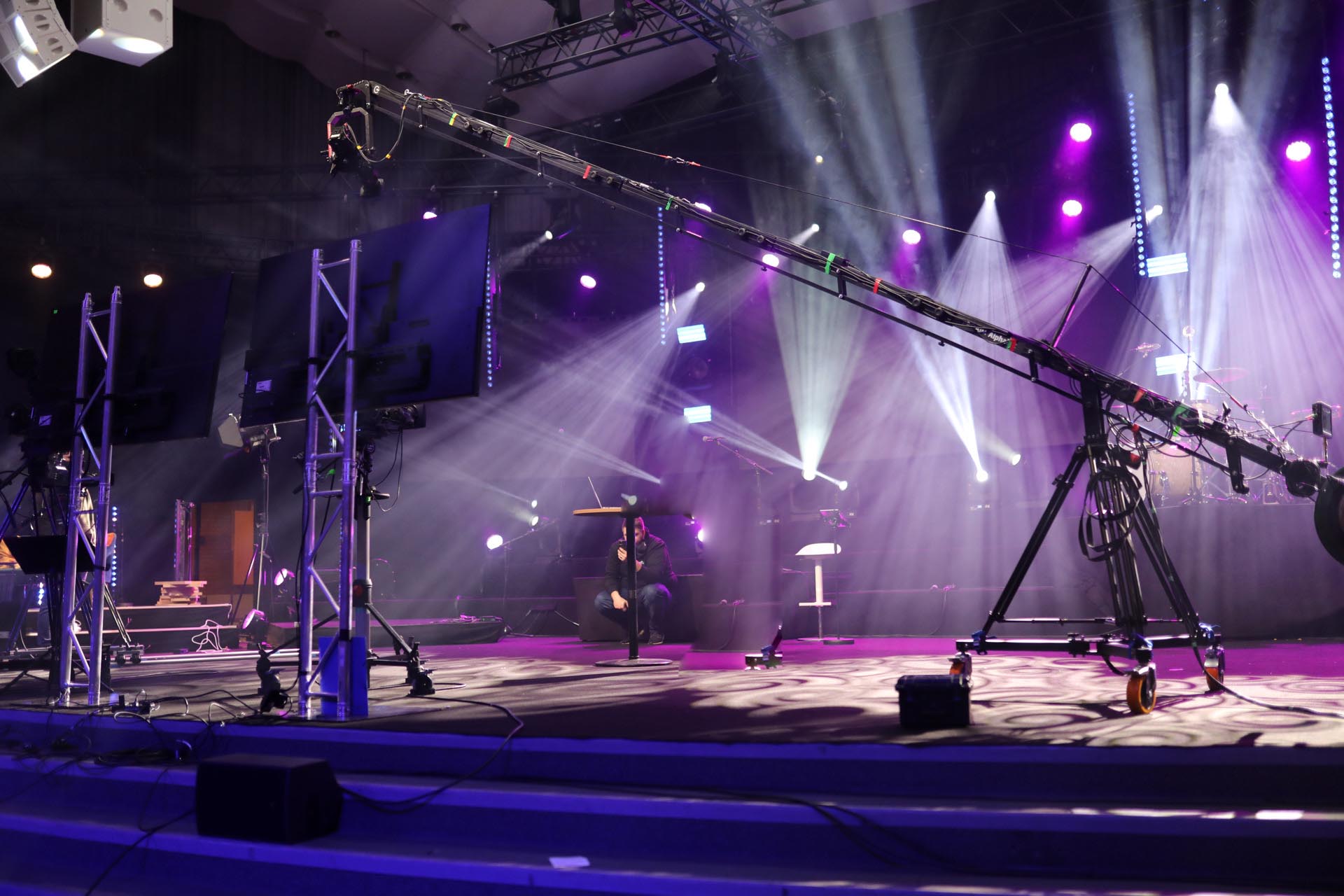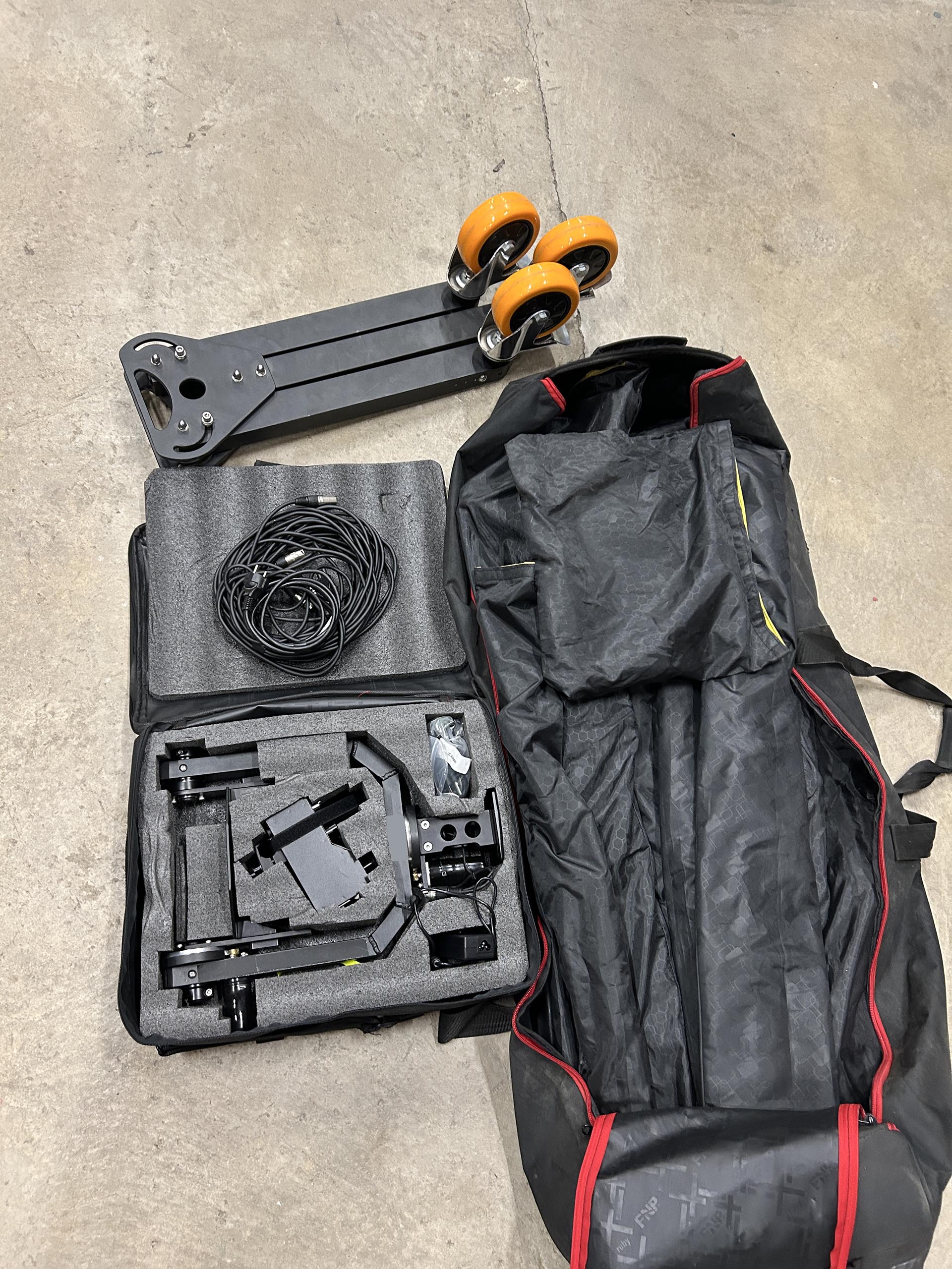 21ft jib crane with pan/tilt head, lightly used and comes with a remote control. The package does not include counterweights, but all other original components are present.