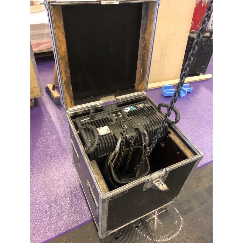 Ideal für Bühnenbau, Theater, Messen, Industrieeinsatz oder Lager. Die Kettenzüge sind sofort einsatzbereit und können nach Absprache besichtigt werden.