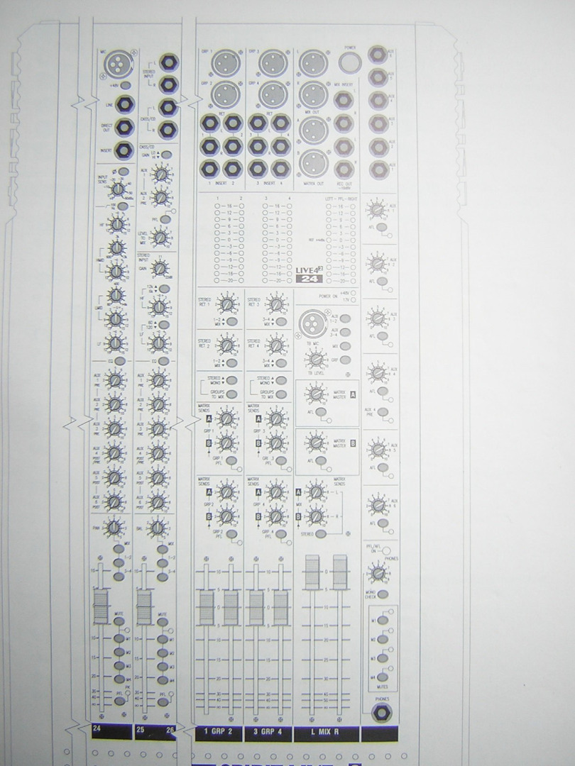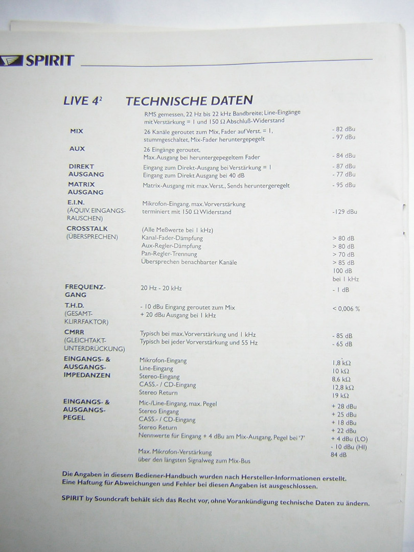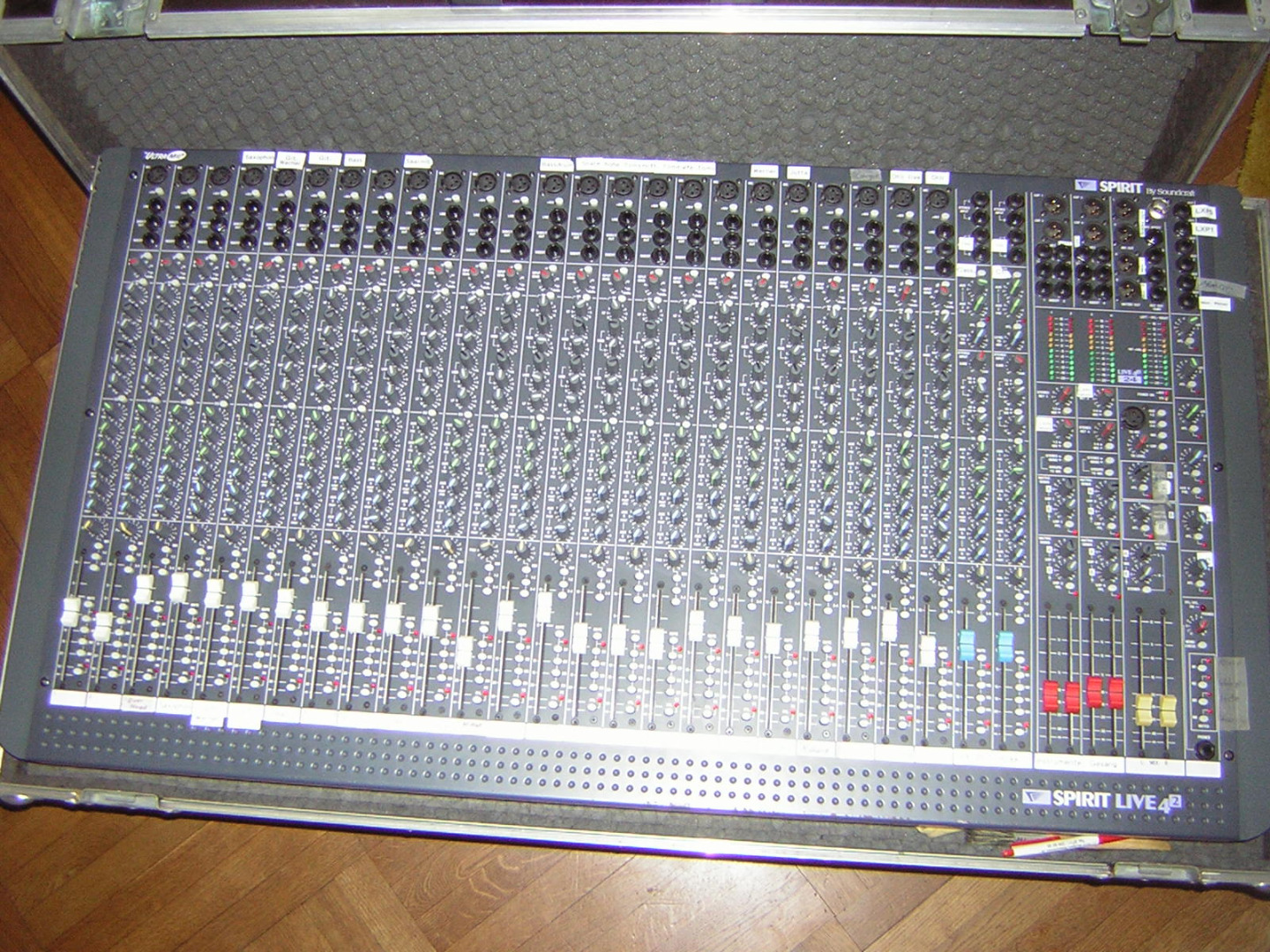 Spirit 4"2 mit 26 Kanäle, 6 Aux Wege, 4 Band
