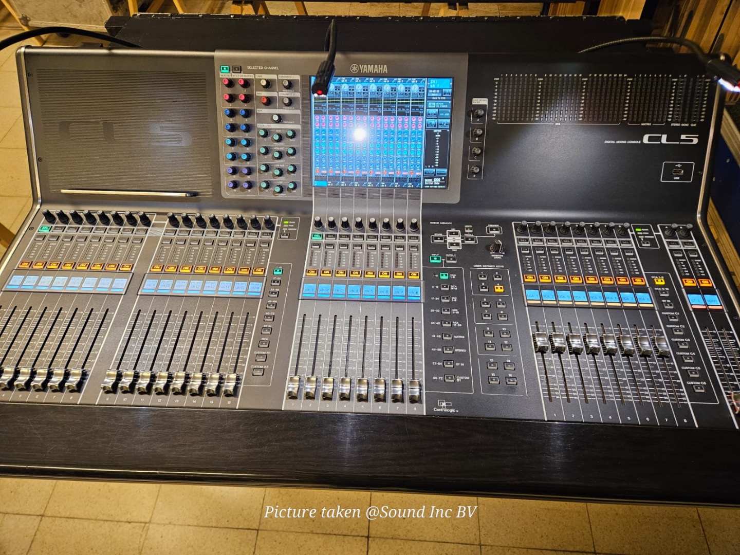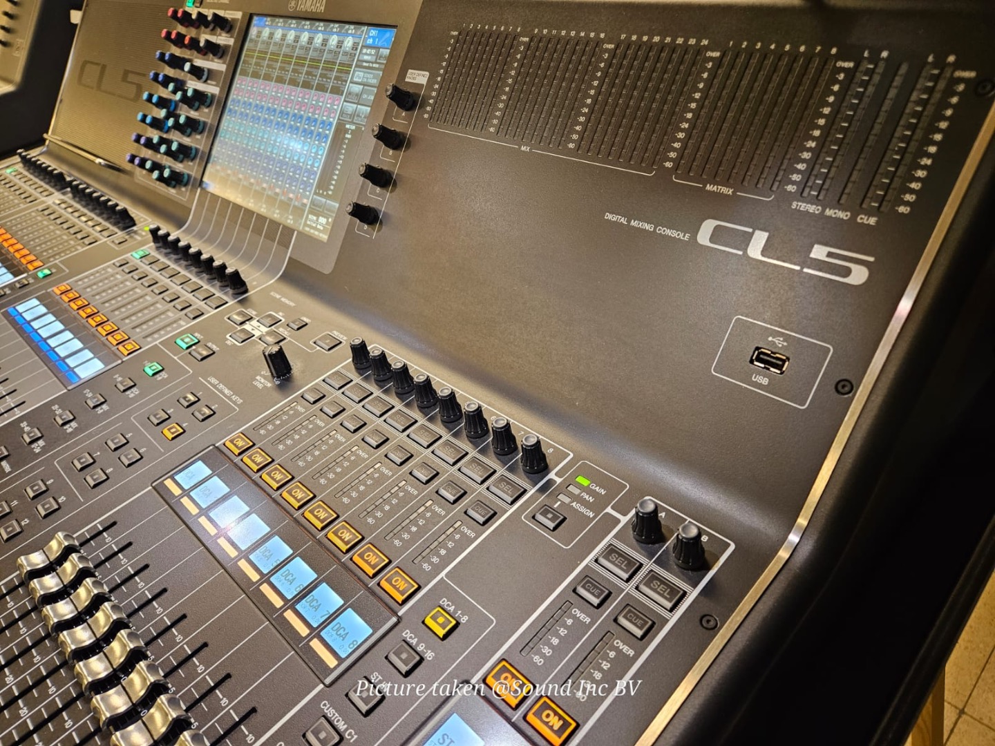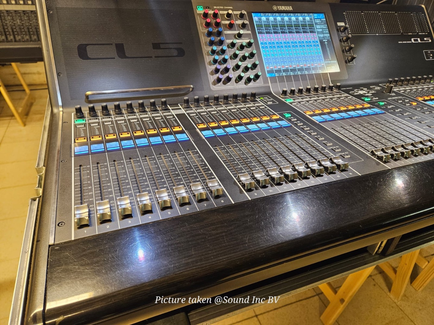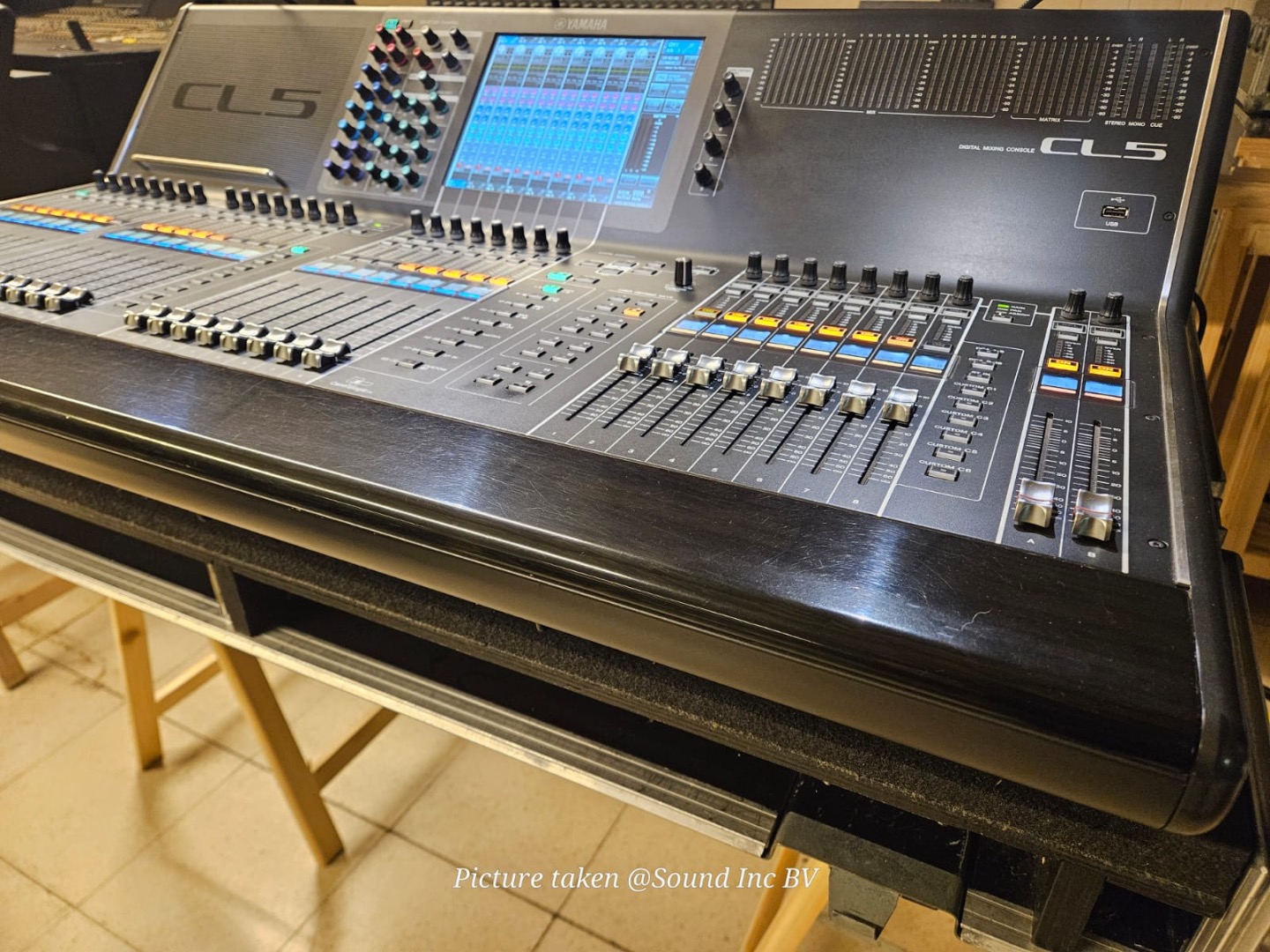 Yamaha CL5 in road case on wheels, dustcover and lites