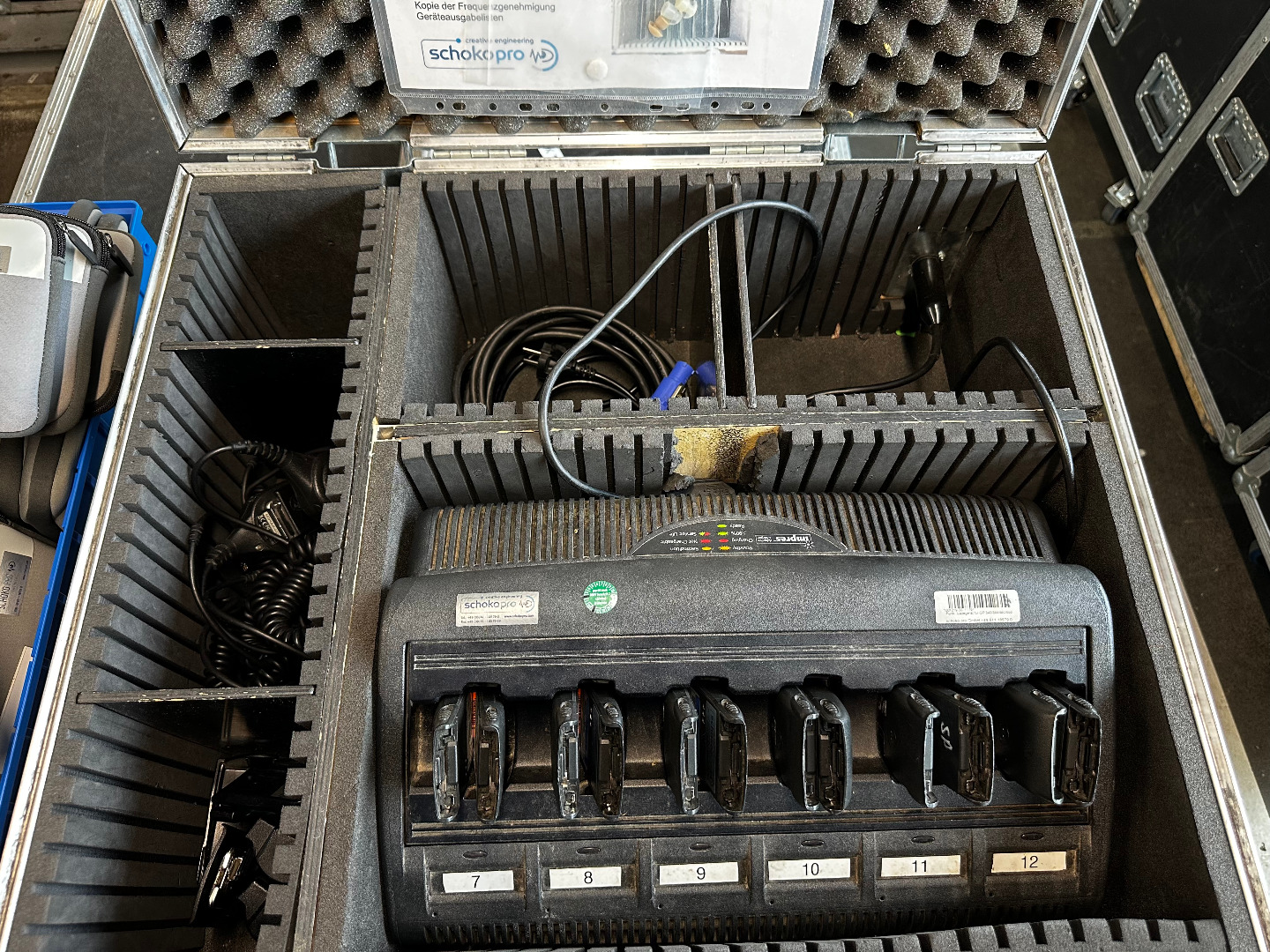 6er Set Koffer, 3x Funkgerät GP344, 8x Akku, 6x Gürtelclip, 3x "Rasierer", 6er Ladegerät