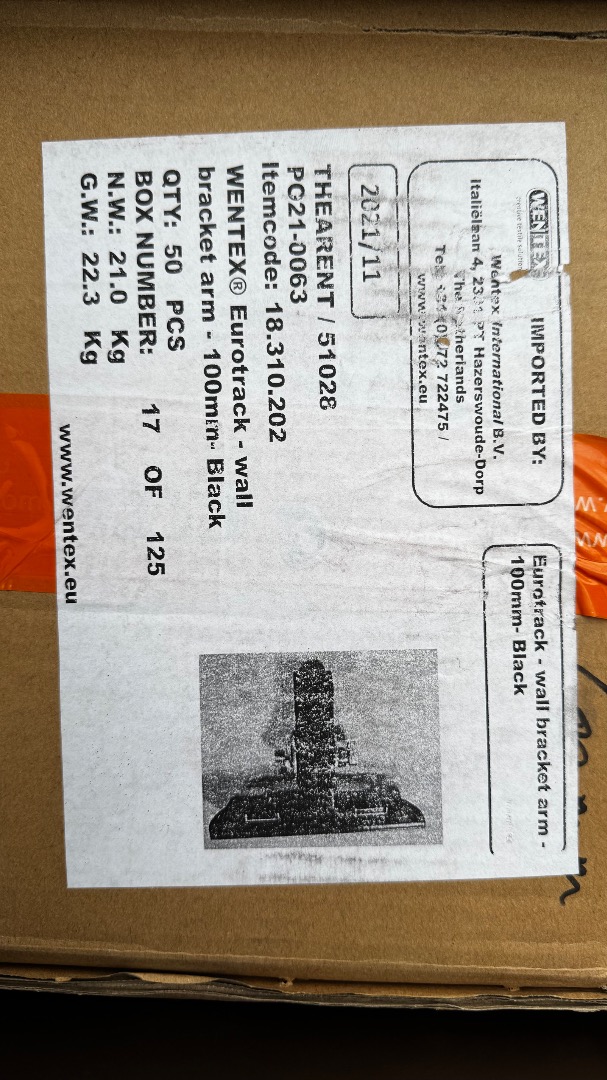 Zum Verkauf stehen hier neue Orginalverpackt Wentex Eurotrack Wandhalterung 100mm in schwarz.