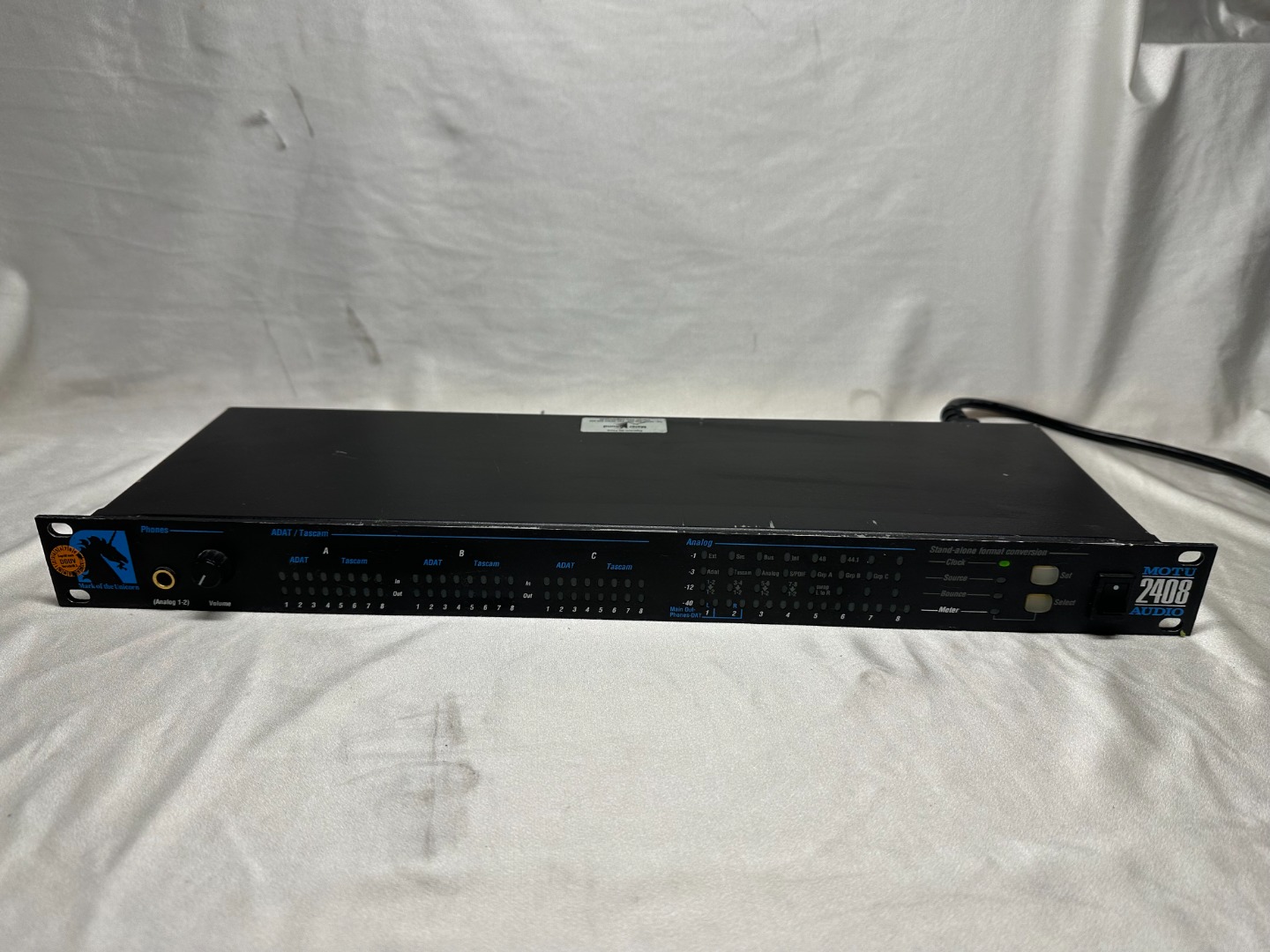 Hiermit verkaufe ich ein Motu 2408 MKii 19‘‘ Audiointerface, das als Wandler zwischen analog und digital in den Formaten ADAT und TDIF genutzt werden kann.
