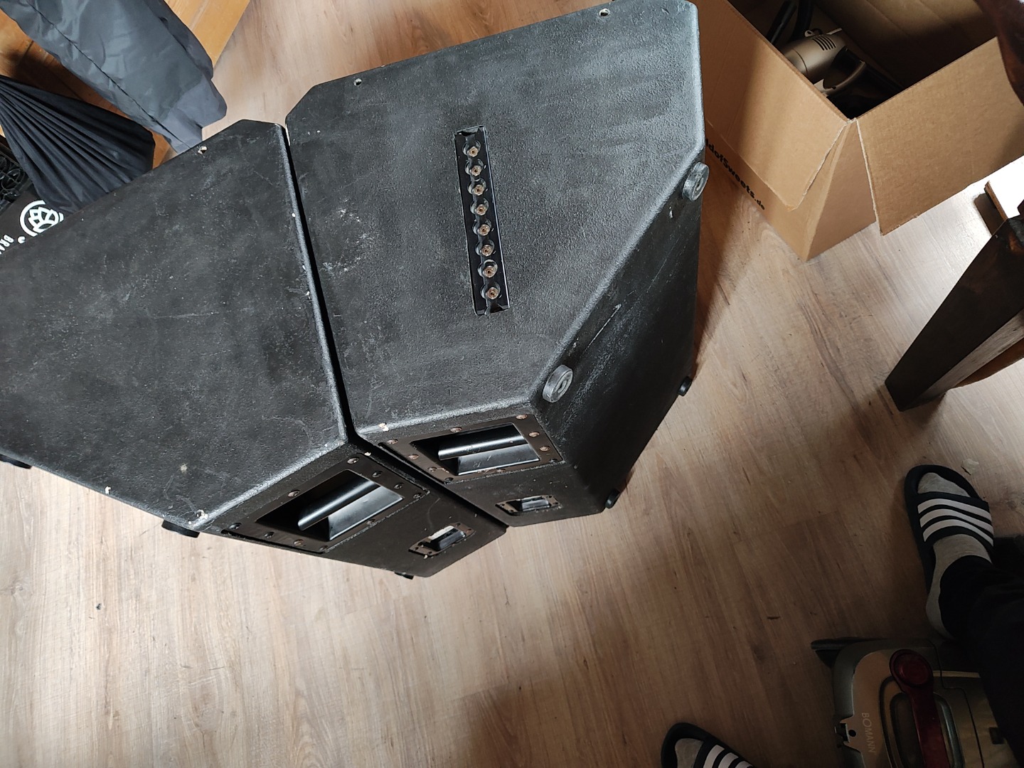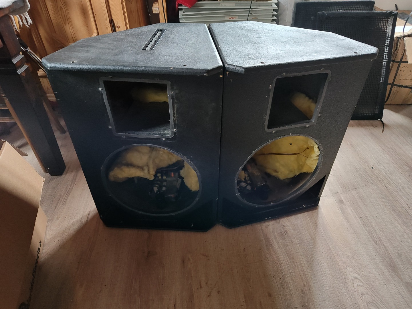 Super verarbeitet aus Multiplex, Frequenzweichen sind noch drin, die sind aber ungeprüft.