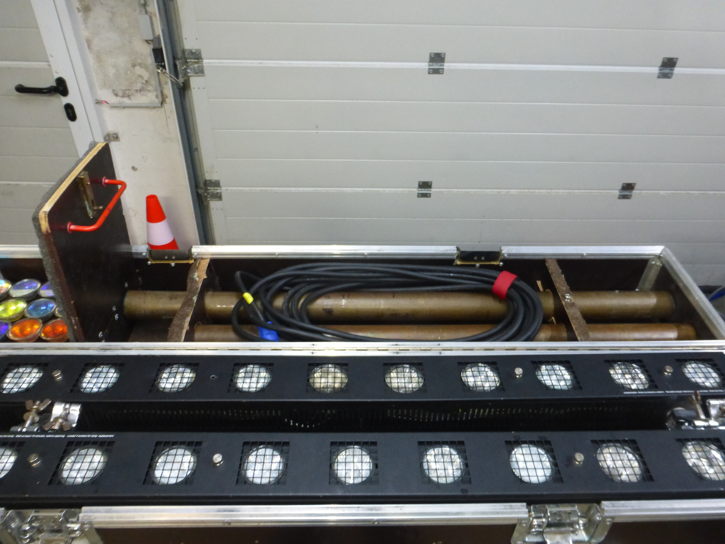 zusätzlich sind farbige 50W GU10 Leuchtmittel mit dabei.