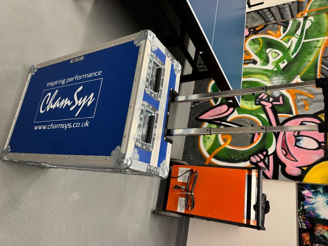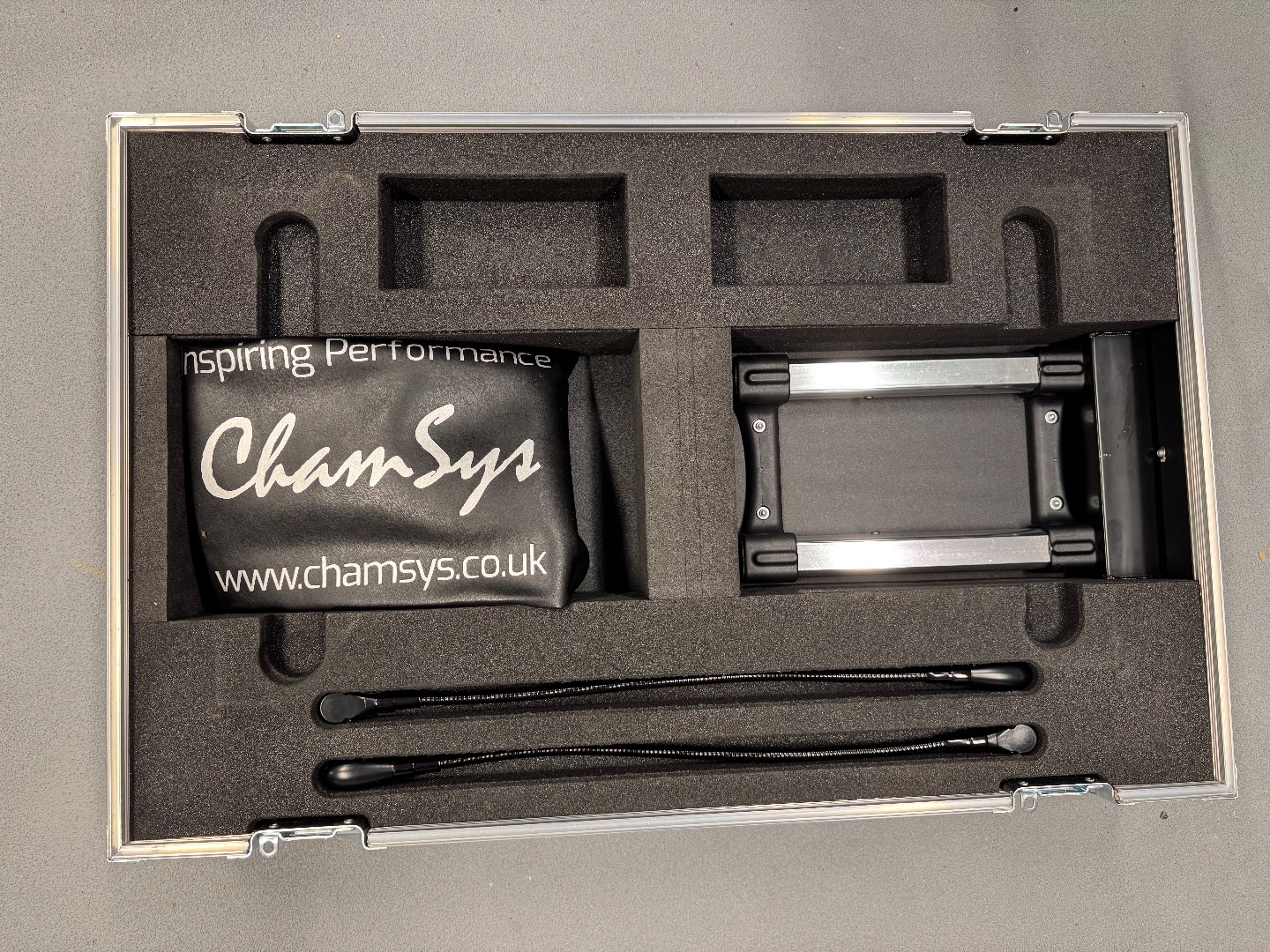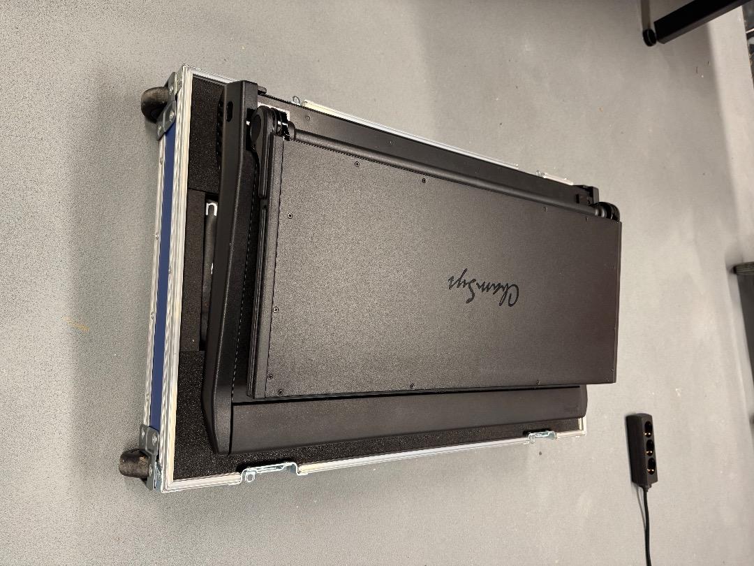 Das Pult kommt im Case mit dem originalen Zubehör (2x Pultlampen, 1x Pultcover, 1x Ente, Netzkabel und Monitorkabel).
