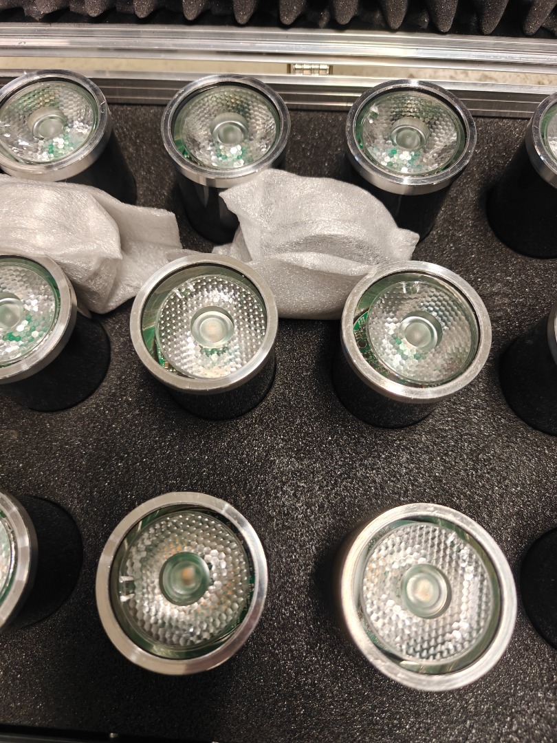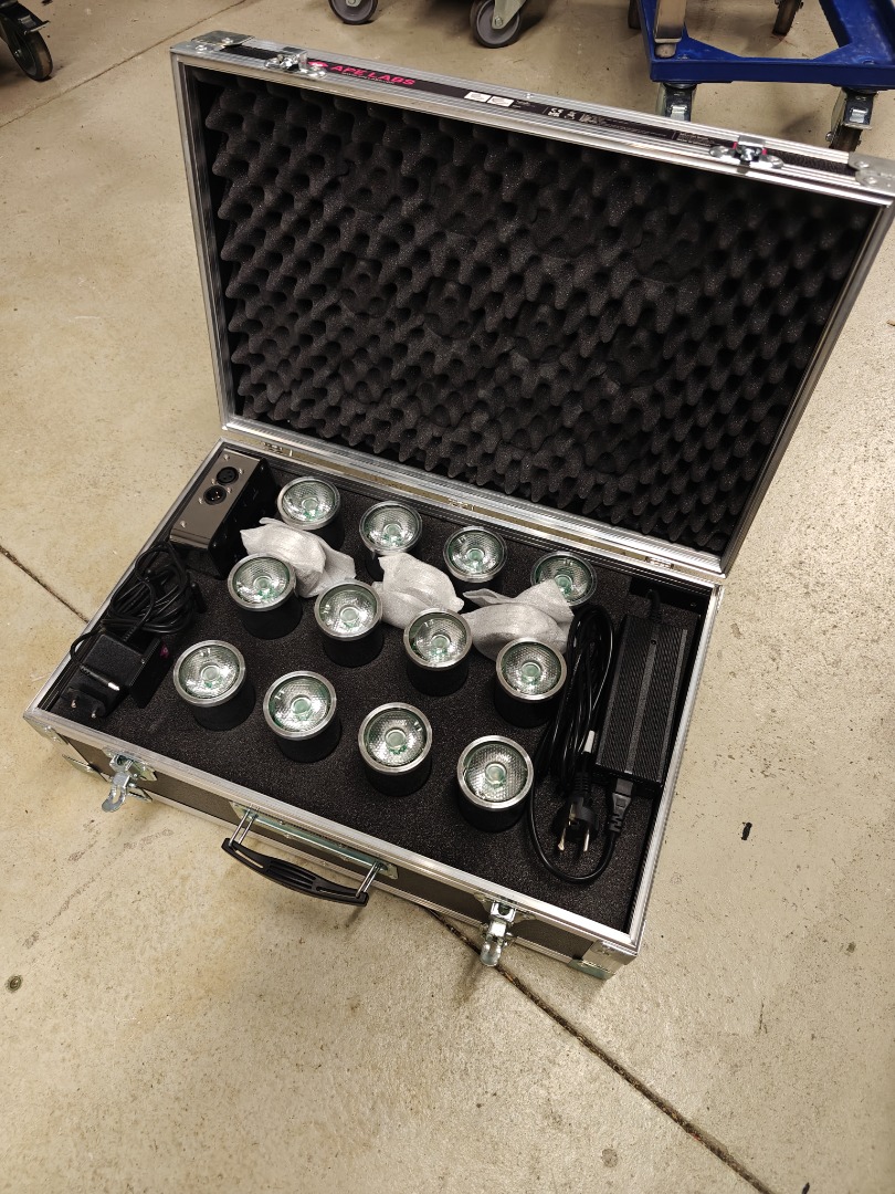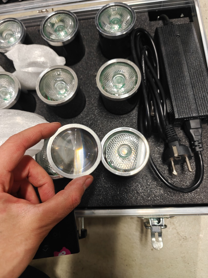 Ebenso ist ein Wireless DMX Transceiver mit dabei. Bei zwei Lightcans ist die integrierte Optik lose, funktioniert dennoch tadellos. (Siehe Bilder)