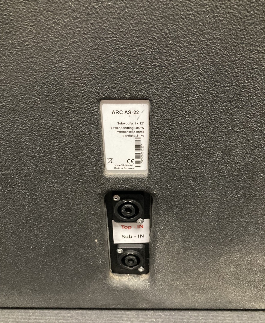 Zum Verkauf kommt hier ein passiver Fohhn ARC AS-22 12" Zoll PA Subwoofer. Der Lautsprecher ist geprüft und in einem guten und voll funktionsfähigen Zustand.